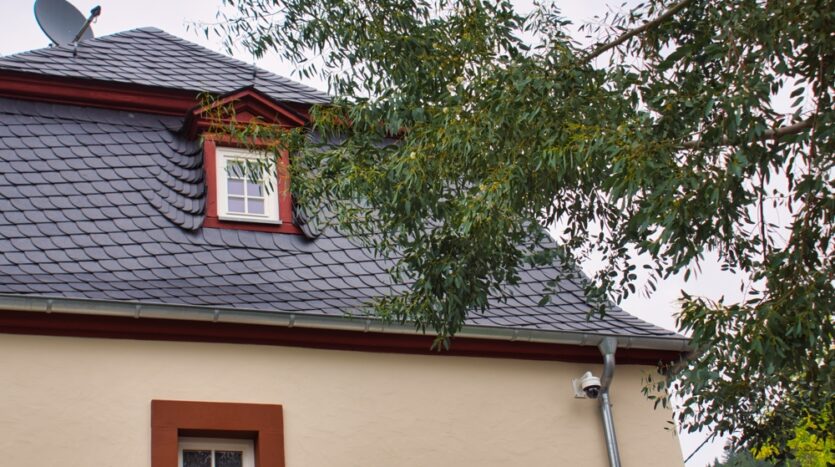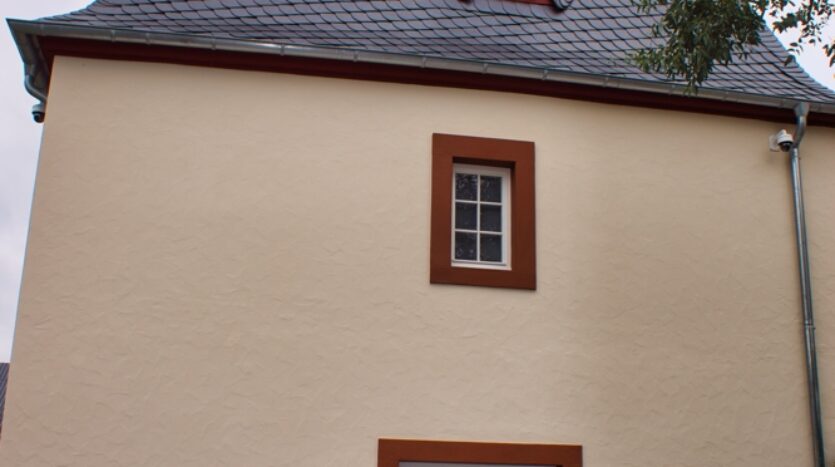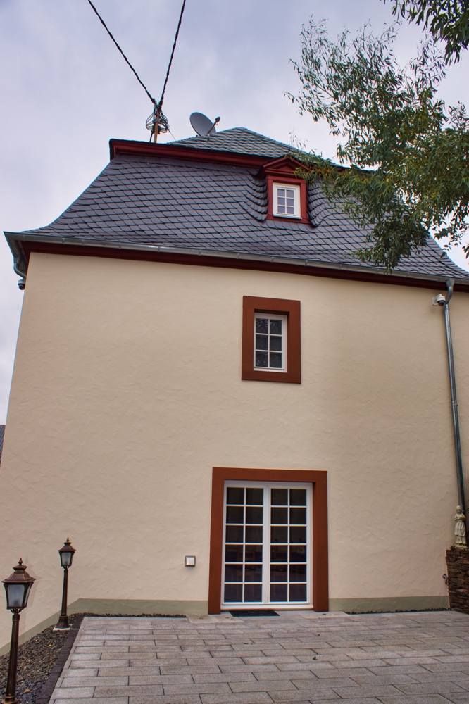 Das schiefergedeckte Mansardenwalmdach wurde im Zuge des völligen Neuaufbaus mit einer 250 mm dicken Zellulose-Isolierung versehen; alle Zwischendecken wurden standardgerecht innerhalb des Bodenaufbaus isoliert. Die Außenmauern bestehen aus Bruchstein beachtlicher Stärke, welche wegen Baudenkmalschutz auch nicht äußerlich verändert werden dürfen.