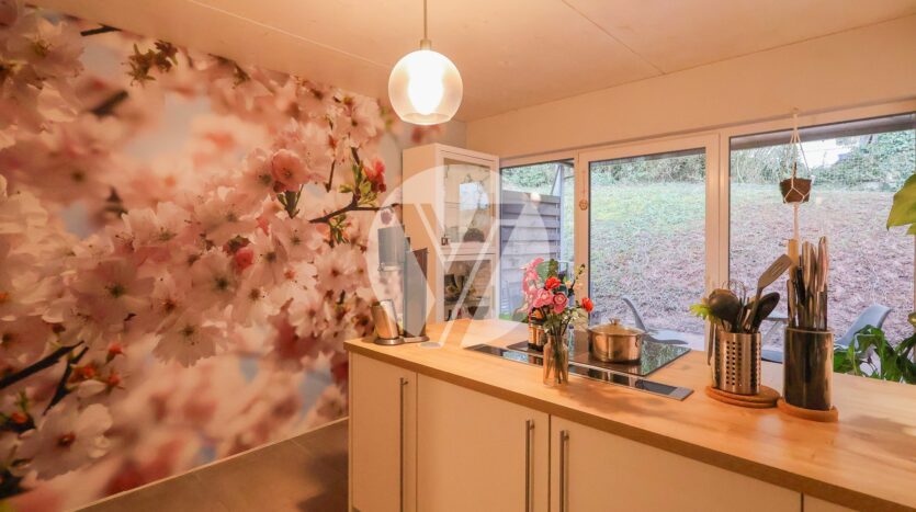 Die moderne Ausstattung umfasst Fliesen und Vinylböden, die für eine pflegeleichte und elegante Optik sorgen. Die Fußbodenheizung in Verbindung mit einer zentralen Lüftungsanlage sorgen stets für ein gutes Raumklima.