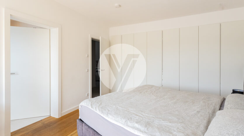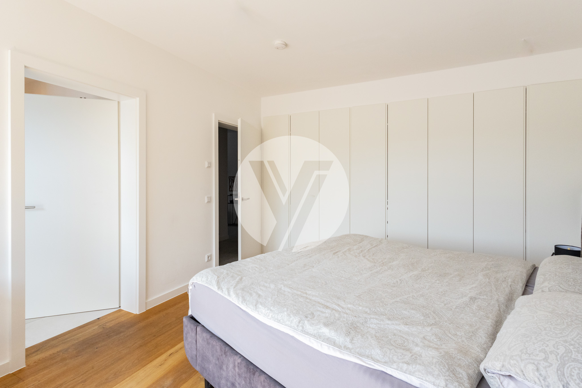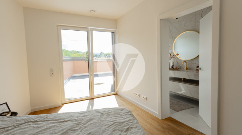 Das Schlafzimmer überzeugt mit einem privaten Rückzugsort und einem angrenzenden, modernen Bad en suite. Hochwertige Materialien, klare Linien und stilvolle Ausstattung sorgen für ein rundum exklusives Wohngefühl.