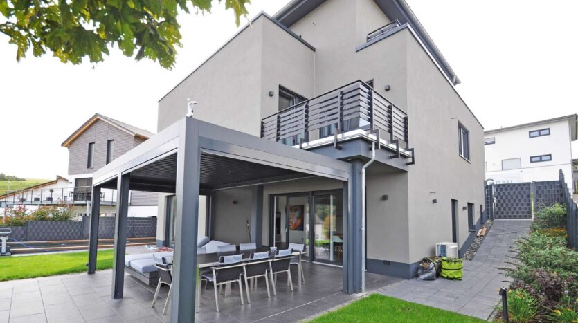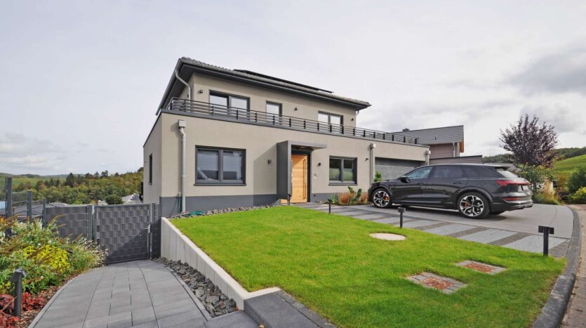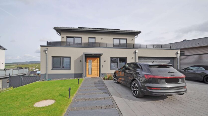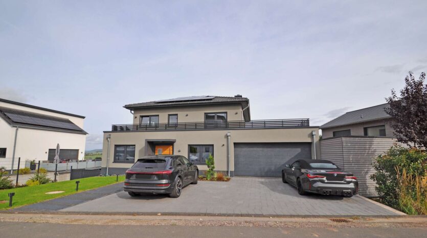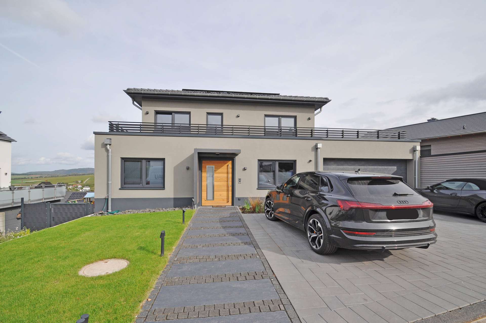 Dieses außergewöhnliche Neubau-Anwesen im stilvollen Bauhaus-Design vereint moderne Architektur, luxuriöse Ausstattung und eine traumhafte Lage mit Panoramablick über den Ort Bekond und die umliegende Natur. Die hochwertige Kombination aus Größe, Grundriss, Design und Technik macht diese Immobilie zu einem echten Unikat für höchste Wohnansprüche.