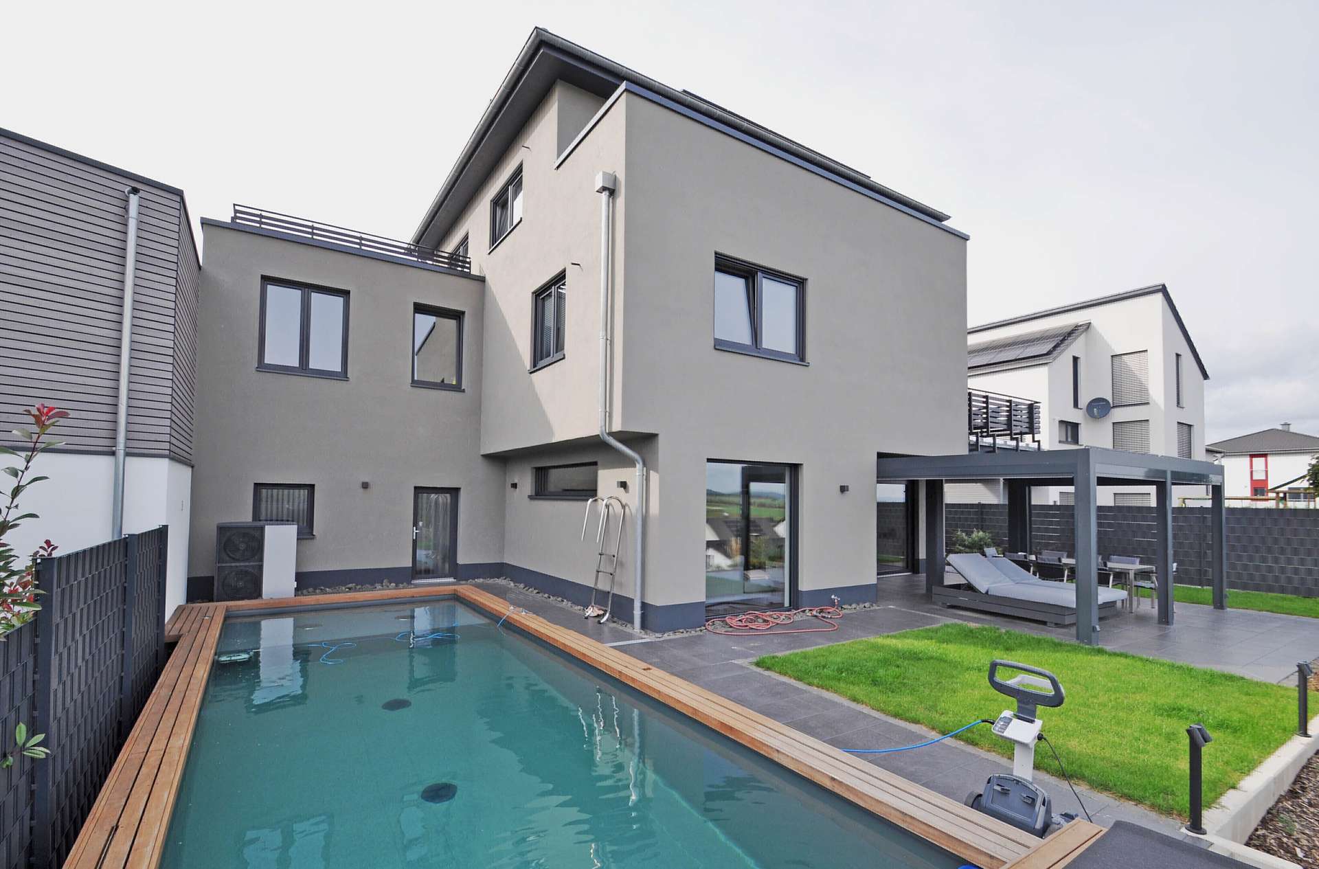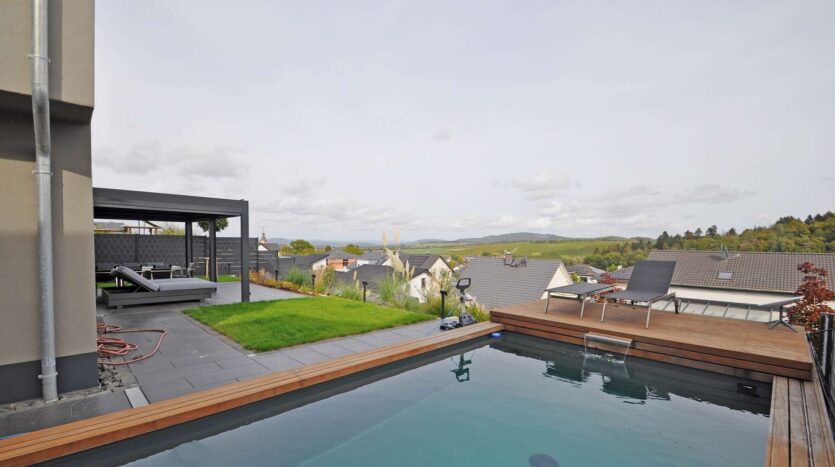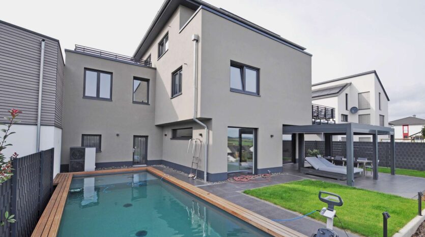 Ein lichtdurchfluteter Grundriss, modernste Haustechnik, erstklassige Baumaterialien und ein mediterran angelegter Garten mit Salzwasserpool samt Gegenstromanlage – dieses Anwesen lässt keine Wünsche offen. Die ruhige Lage am Ortsrand und die kompromisslose Qualität garantieren Ihnen ein neues Zuhause der Extraklasse.
