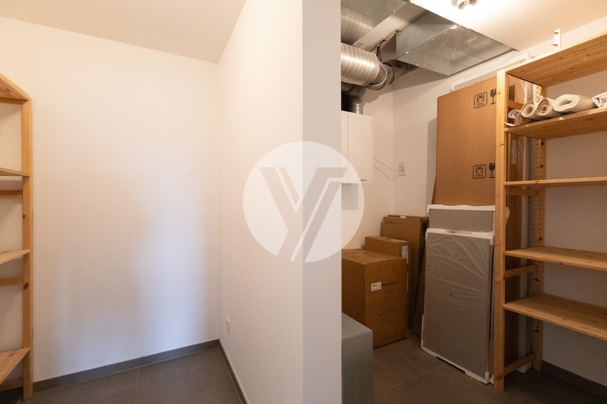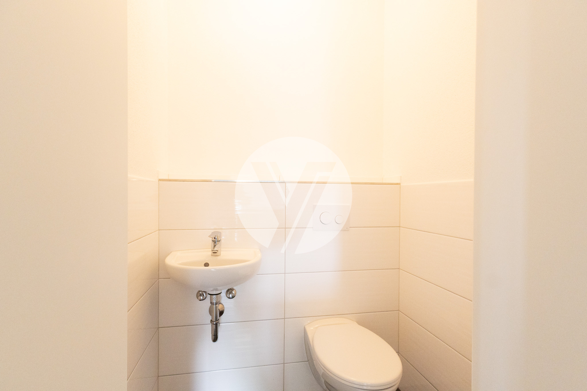 Die moderne Ausstattung umfasst Fliesen und Vinylböden, die für eine pflegeleichte und elegante Optik sorgen. Die Fußbodenheizung in Verbindung mit einer zentralen Lüftungsanlage sorgen stets für ein gutes Raumklima.