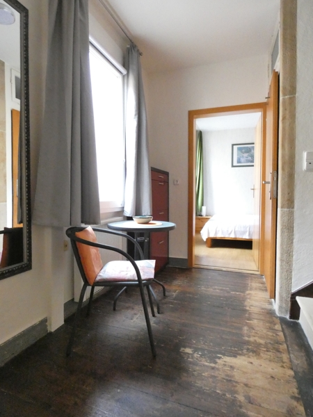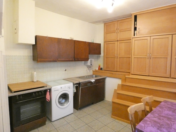Op de begane grond vindt u de keuken met zithoek en inbouwkast (timmerwerk), de voormalige wijnperskamer en twee toiletten. Omdat de wijnperskamer een eigen deur naar de straat heeft, kan deze perfect gebruikt worden als fietsenstalling.