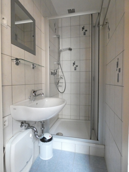Im 1. Obergeschoss ist das Wohnzimmer, die Dusche sowie ein Schlafzimmer gelegen.