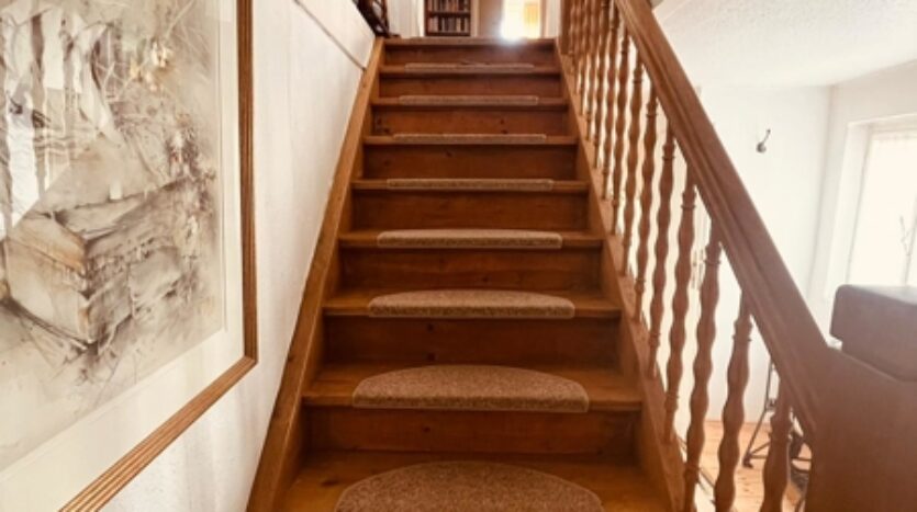 Im Obergeschoss befinden sich zwei Schlafzimmer, eines davon als Durchgangszimmer.