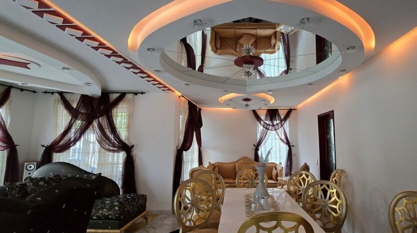 Die hochwertigen Kristalllampen der aufwändigen Deckenbeleuchtung setzen den gesamten Wohn- und Essbereich in ein wahrlich perfektes Licht.