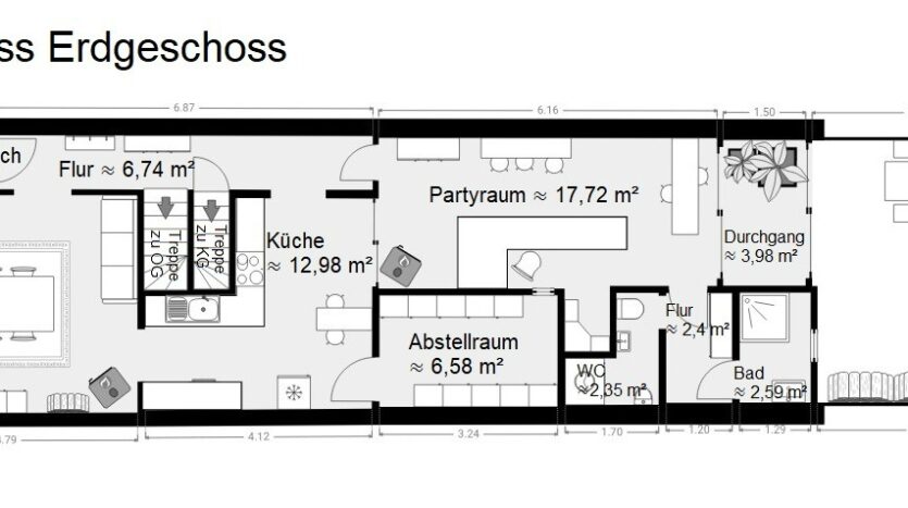Partyraum: ca. 17,72 m²