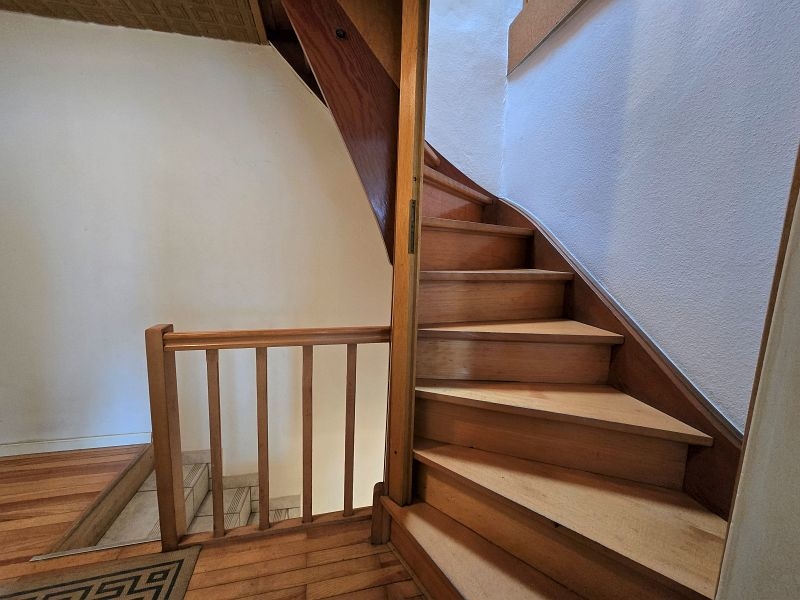 Via een houten trap bereikt u de eerste verdieping. Er is een woonkamer, een slaapkamer met een kleine inloopkast en een badkamer die gerenoveerd moet worden.