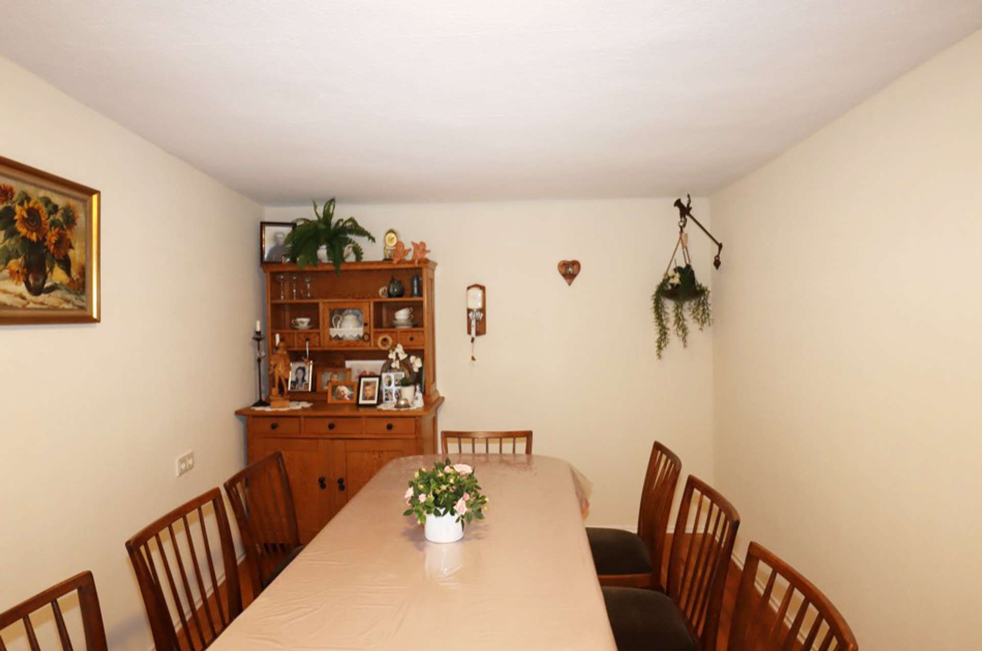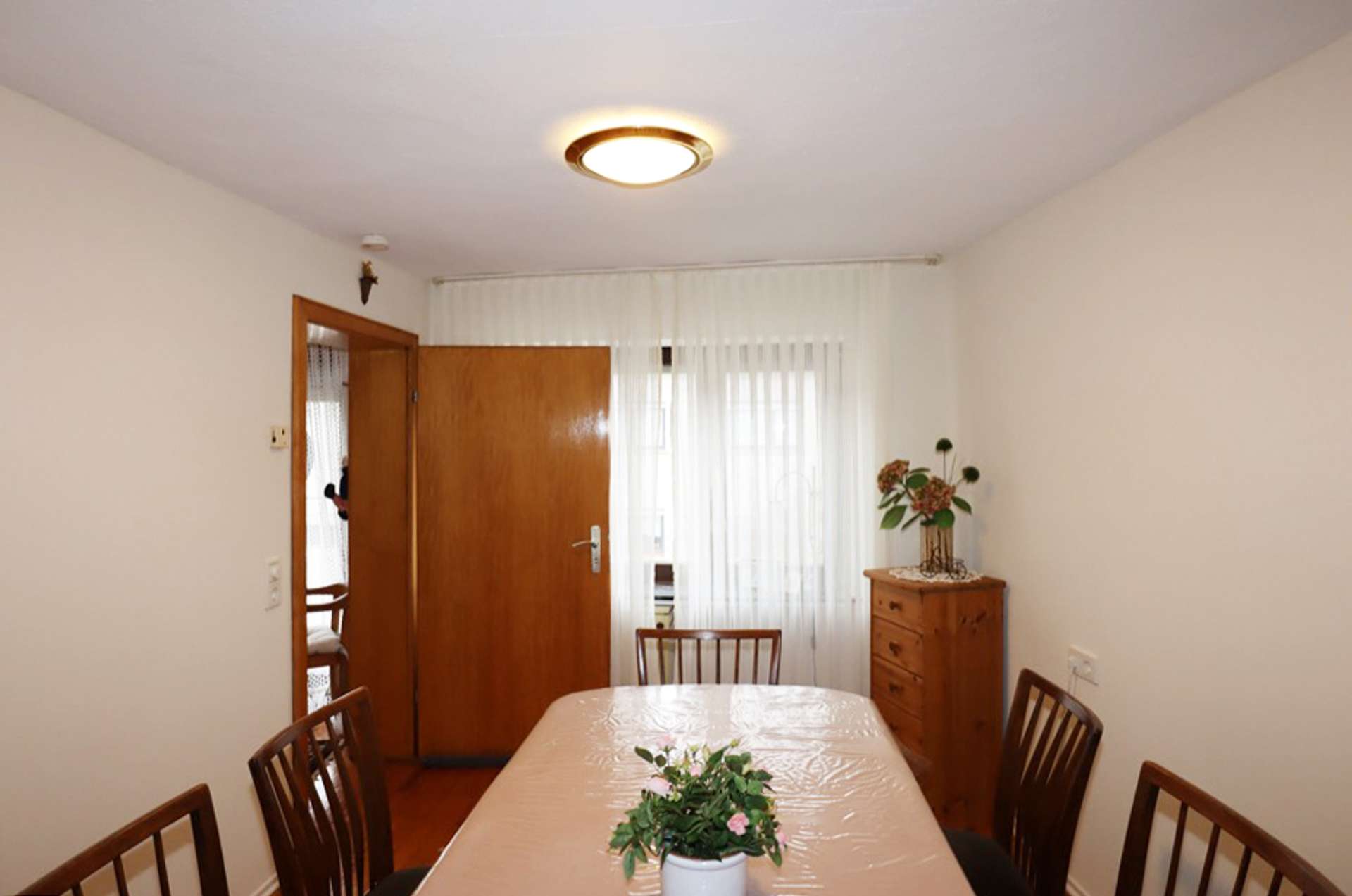 Die Wohnfläche beträgt 115 m², das Grundstück ist 588 m² groß. Das Haus verfügt insgesamt über 5 Zimmer, Küche, Bad und HWR. Im Erdgeschoss mit 70 m² befinden sich 2 Wohnräume, Diele, Küche, Bad und HWR. Im Obergeschoss mit 45 m² befinden sich Diele, 2 Schlafzimmer sowie ein Durchgangszimmer, welches als Ankleideraum dient. Aus der Diele heraus gelangt man auf den kleinen Balkon. Auf dem 588 m² großen Grundstück steht ein kleines ehemaliges Ökonomiegebäude und eine Doppelgarage. Der Hof ist gepflastert und bietet einen kleinen gepflegten Gartenanteil.