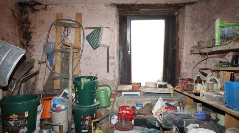 Op het perceel van 588 m² bevinden zich een klein voormalig boerderijgebouw en een dubbele garage. De binnenplaats is geplaveid en beschikt over een kleine, goed onderhouden tuin.