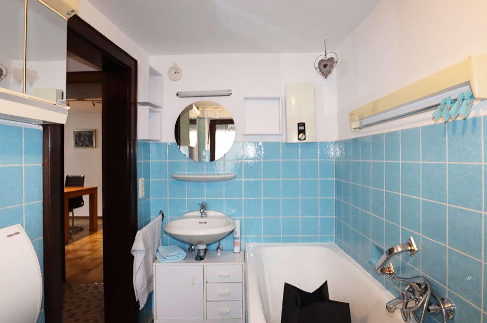 Holz- / Kunststofffenster mit Doppelverglasung. Nachtspeicheröfen, Kaminofen. Warmwasserbereitung über Durchlauferhitzer.