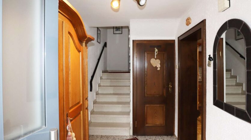 Begane grond: entree, hal, 2 woonkamers, keuken, badkamer met douche, ligbad en toilet, bijkeuken, trap naar boven.