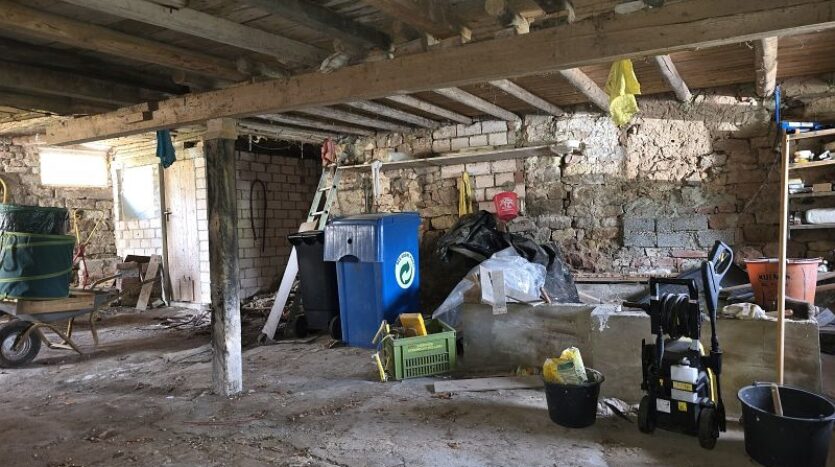 Das Erdgeschoss der Scheune wurde in der Vergangenheit als Garage und Abstellfläche genutzt. Weitere PKW-Außenstellplätze stehen auf dem Hof vor dem Haus bereit.