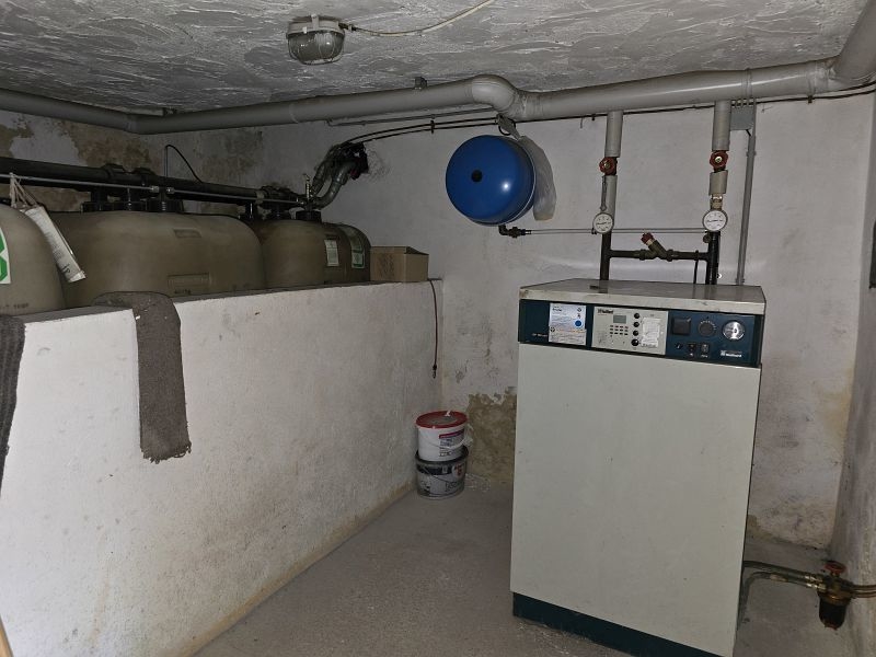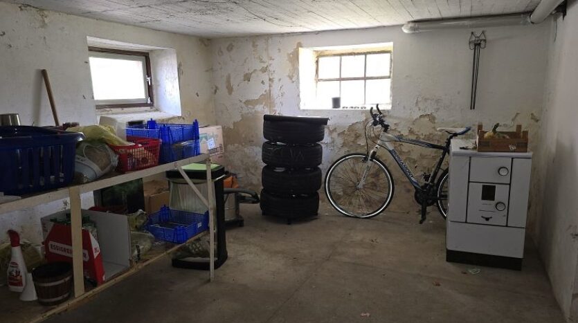 Das Wohnhaus ist unterkellert. Hier befinden sich die Ölheizung mit den Öltanks sowie mehrere Lager- und Abstellräume.