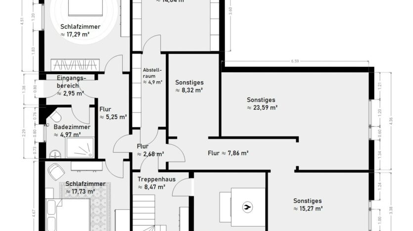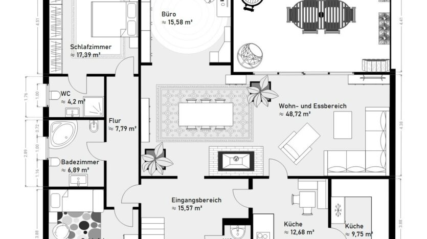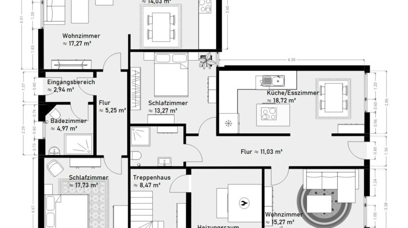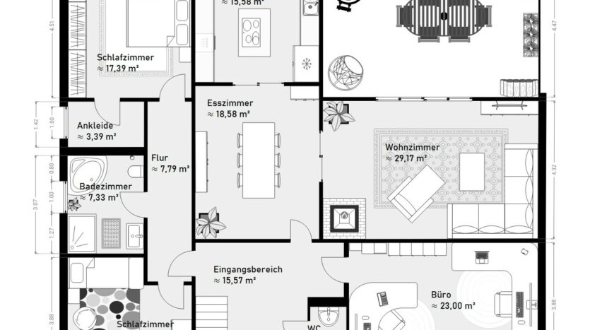 Grenzen gibt es keine, der Grundriss ist gut und kann