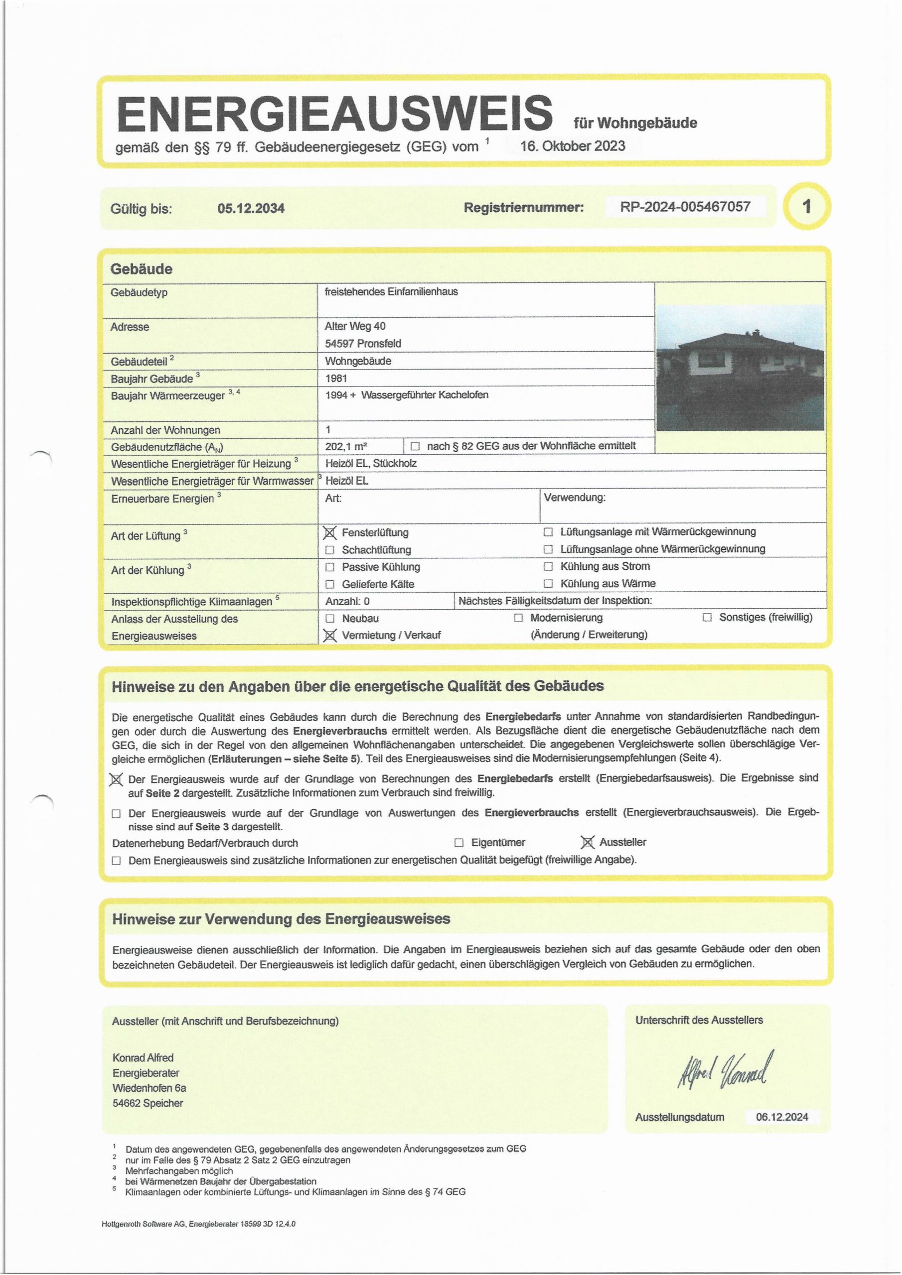 Heizung: 1994 Öl-Heizung, Kachelofen