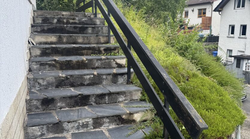 Ein besonderes Highlight ist die Terrasse, von der aus Sie einen herrlichen und unverbaubaren Weitblick genießen können. Der Treppenaufgang zum Haus hält Sie fit und bietet gleichzeitig eine angenehme Distanz vom Alltagstrubel.