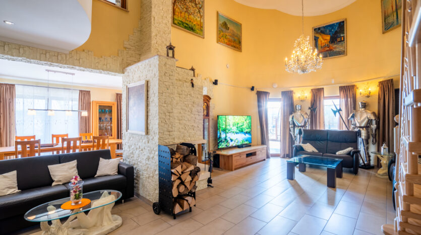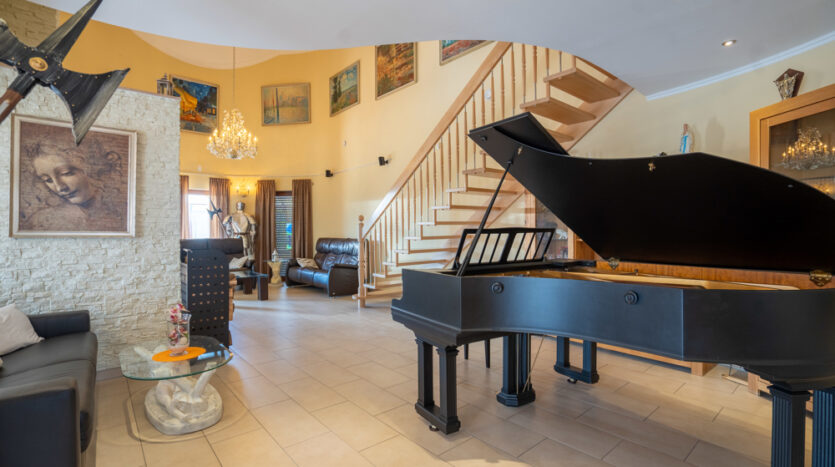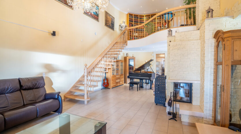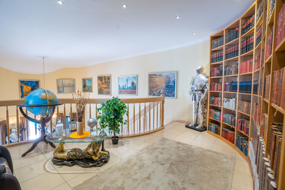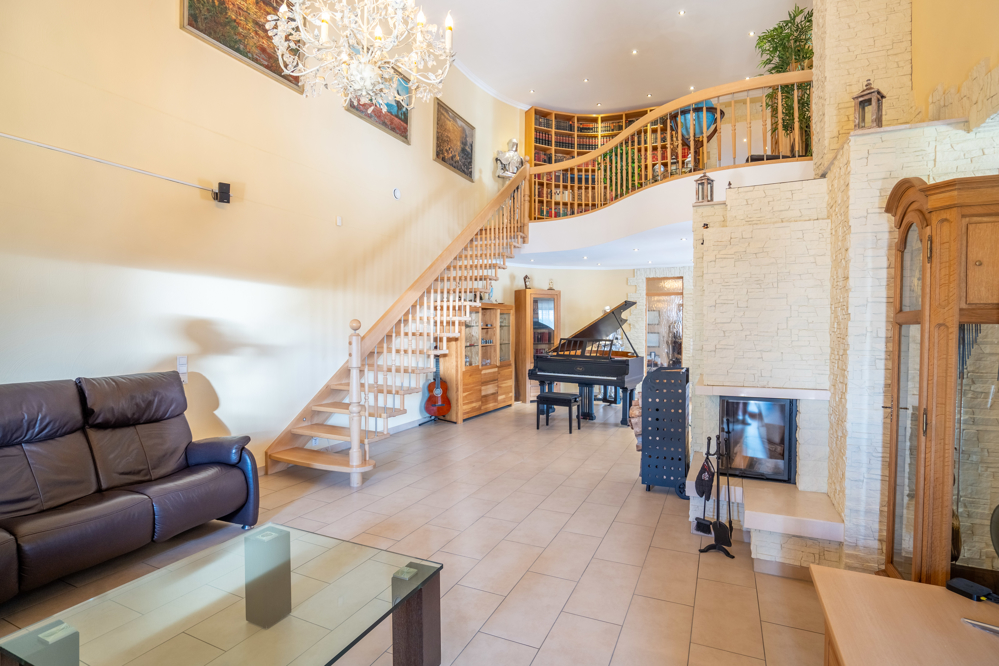 Hier verbringen Sie gemütliche Abende am Kamin, dem Piano oder der Bibliothek in der Galerie im Obergeschoss, welche einen herrlichen Blick in den Wohnbereich bietet.