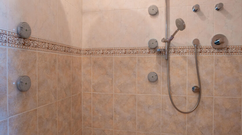 De bovenverdieping wacht op het verwelkomen van nieuwe bewoners in de ruime hoofdslaapkamer met aangrenzende en-suite badkamer met whirlpool, grote tv en eigen doucheruimte.