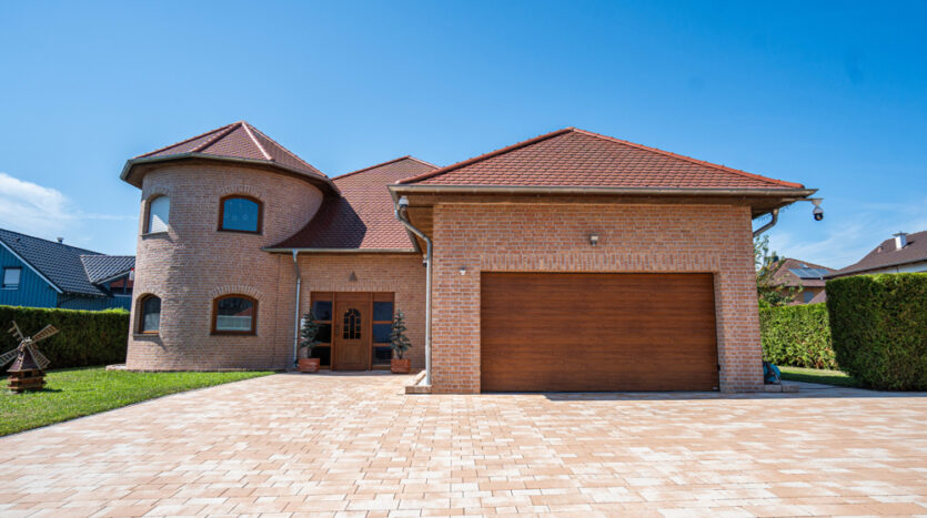 Het gebouwencomplex bestaat uit het ruime woongebouw van twee verdiepingen, twee dubbele garages en het enorme pool-house.