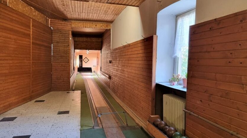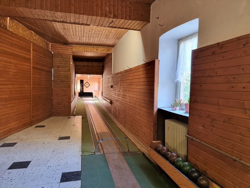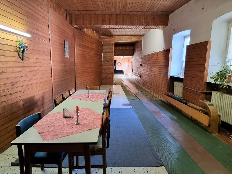 Das Gasthaus verfügt über eine sehr geräumige Küche, einen großen Gastraum mit Theke und mehreren Tischen. Ein weiterer Raum von ca. 20 m² kann für private Feiern und Sitzungen genutzt werden. Vom Gastraum aus gelangt man auch direkt zur Kegelbahn. Die Kegelelbahn ist aufgrund eines elektronischen Fehlers nicht mehr in Betrieb. Auf gleicher Etage befindet sich ein großzügiger Lager- und Stauraum der vielfältig genutzt werden kann.