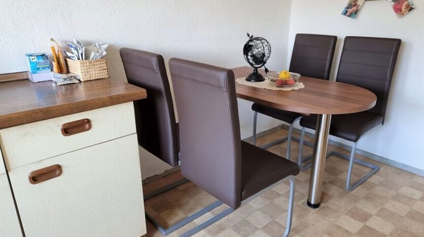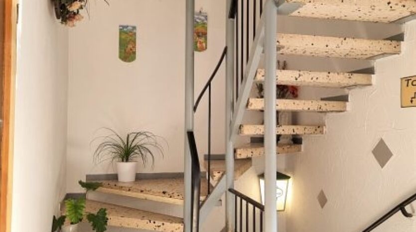 Durch das innenliegende Treppenhaus gelangt man zur Betreiberwohnung (Inhaberwohnung). Diese großzügige Etagenwohnung verfügt über drei Schlafzimmer, eine Küche mit integrierter Einbauküche und Essecke, ein Wohnzimmer mit Balkon, ein Abstell- und Vorratsraum und die Diele.