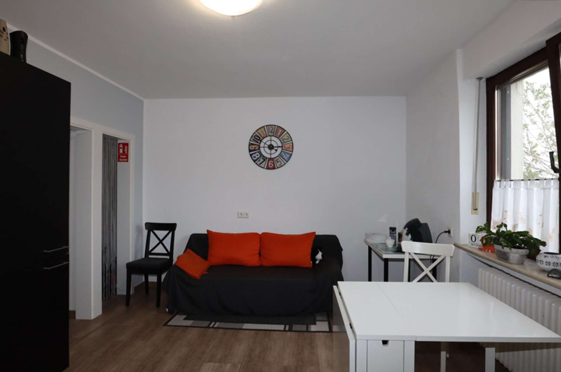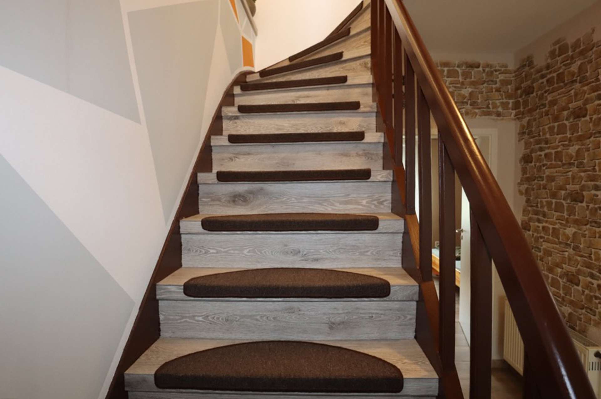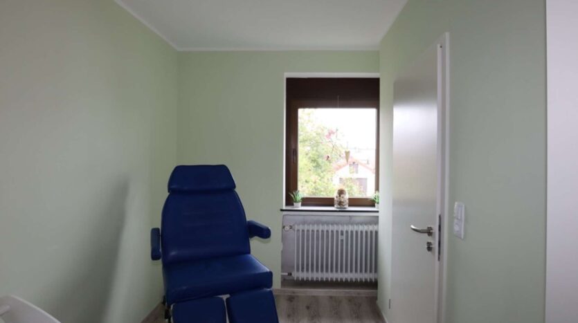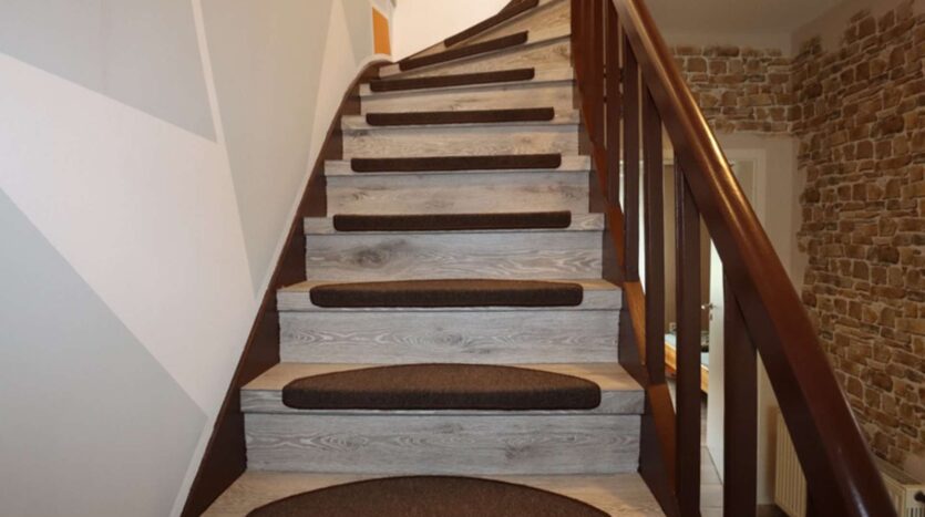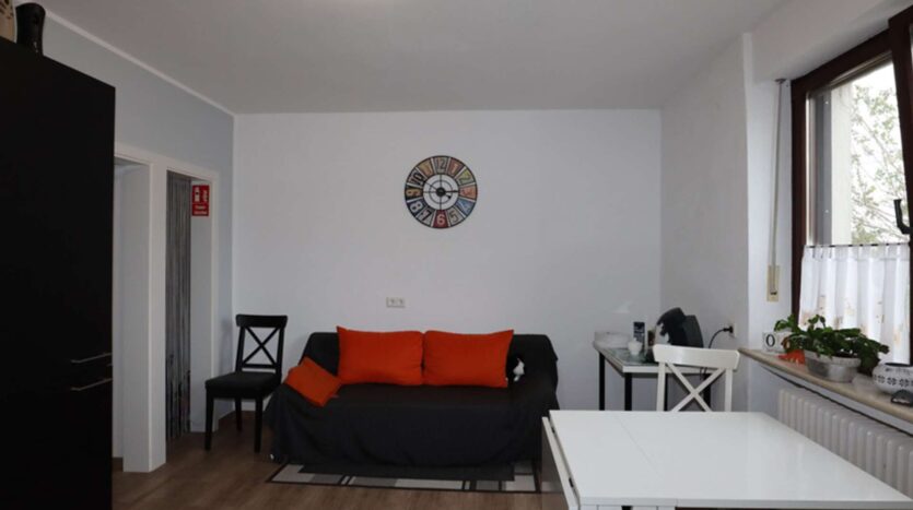 Auf der rechten Seite liegt das Ursprungsgebäude, in dem sich im Erdgeschoss die kleine Ferienwohnung befindet. Mit einem Schlafzimmer, einem kombinierten Wohn-/ Küchenraum, einem kleinen Abstellraum und einem Badezimmer ist das kleine Urlaubsglück perfekt. Die Treppe führt hinauf zu den aktuell als kleine Gewerbeeinheit genutzten Räumen. Hier befinden sich drei Zimmer, eines davon mit Zugang zur Wohneinheit links und ein Duschbad.