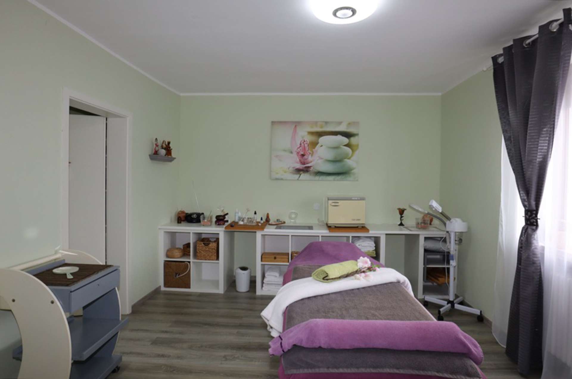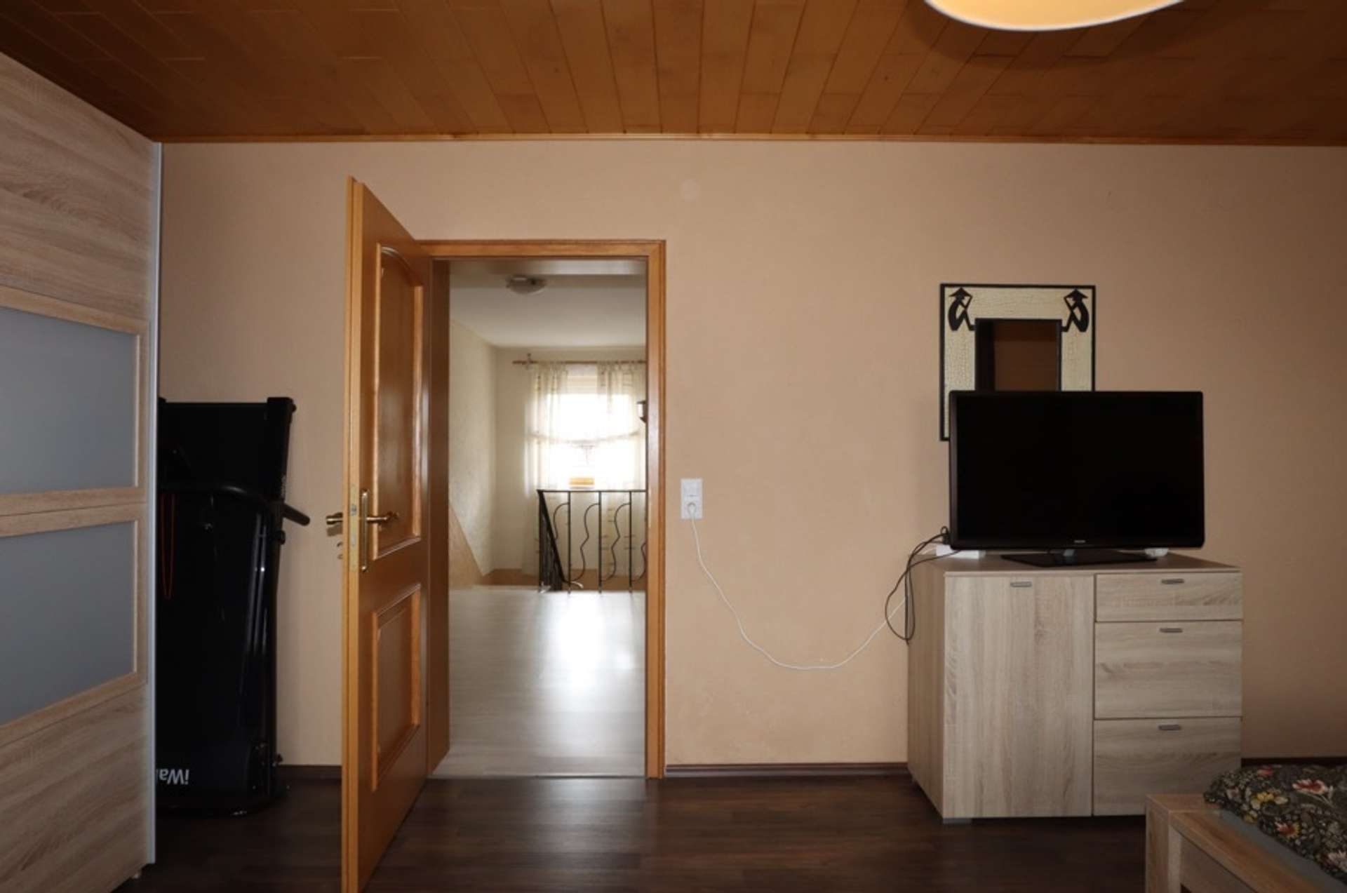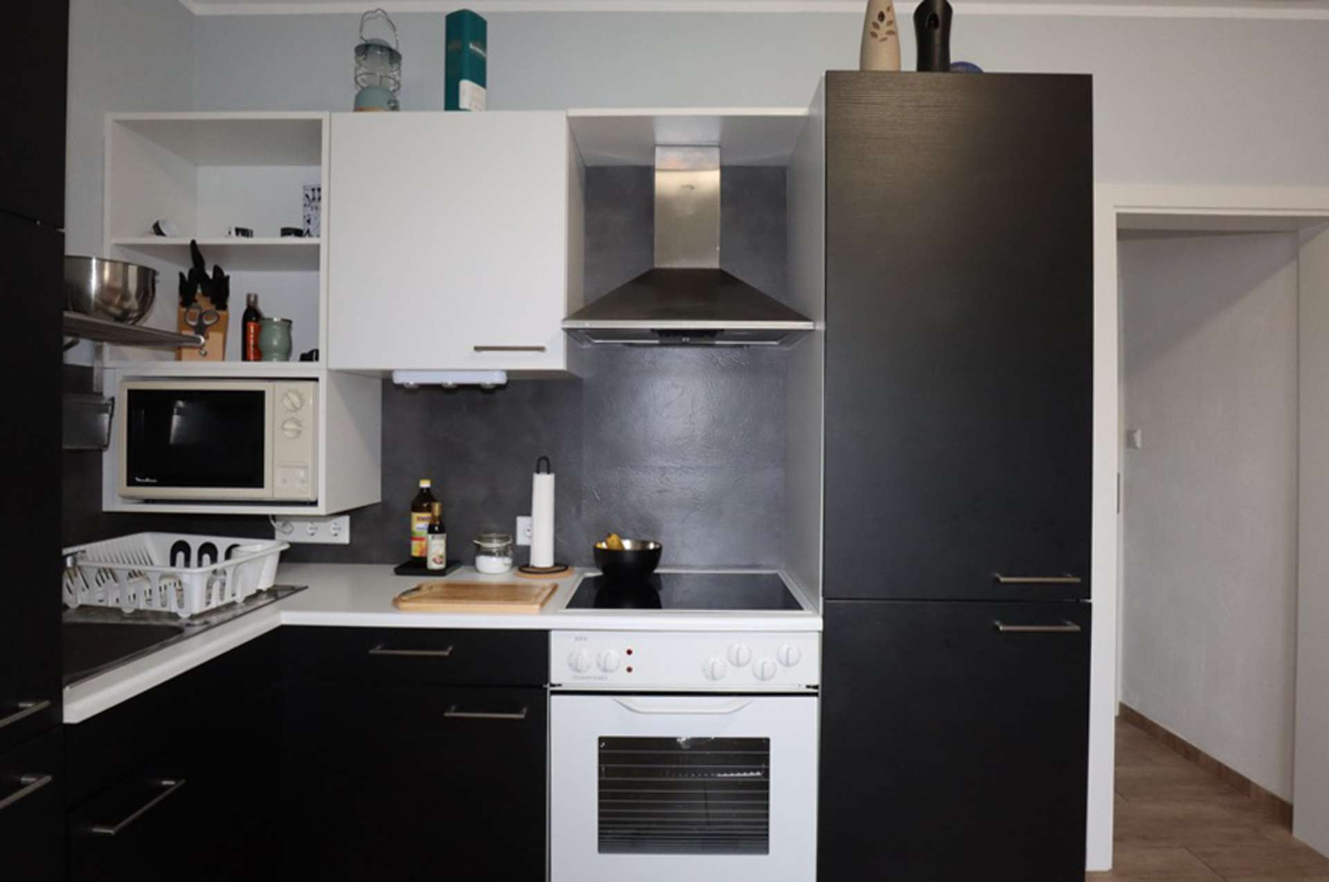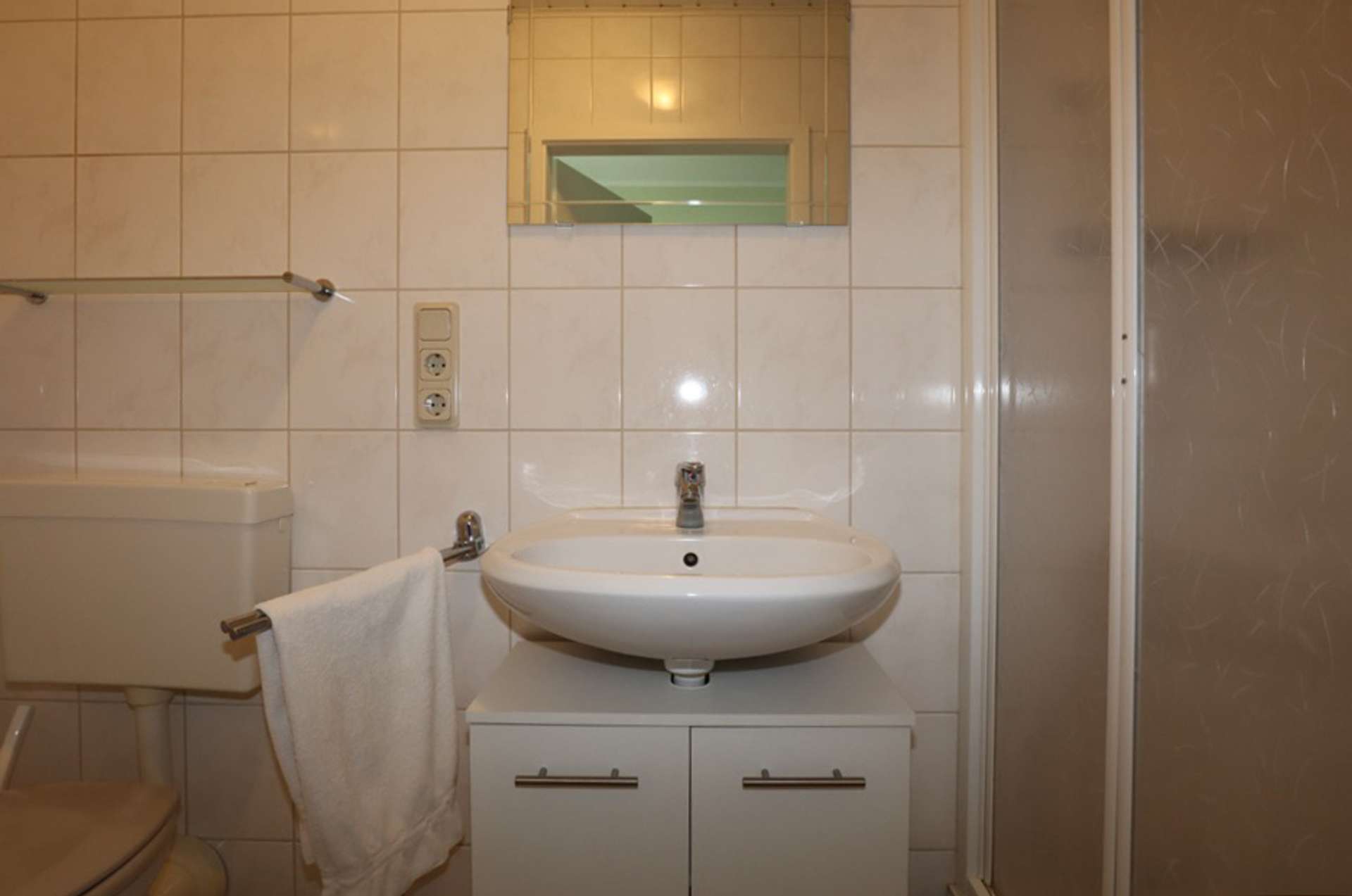 Auf der rechten Seite liegt das Ursprungsgebäude, in dem sich im Erdgeschoss die kleine Ferienwohnung befindet. Mit einem Schlafzimmer, einem kombinierten Wohn-/ Küchenraum, einem kleinen Abstellraum und einem Badezimmer ist das kleine Urlaubsglück perfekt. Die Treppe führt hinauf zu den aktuell als kleine Gewerbeeinheit genutzten Räumen. Hier befinden sich drei Zimmer, eines davon mit Zugang zur Wohneinheit links und ein Duschbad.