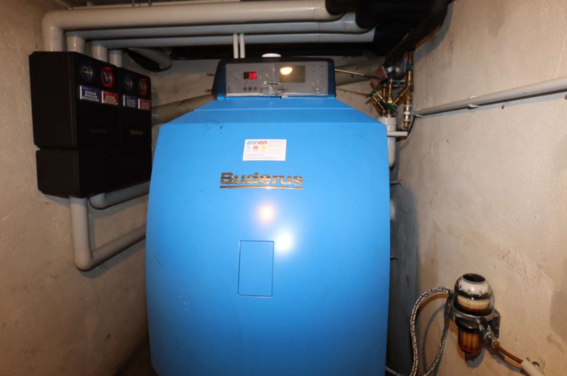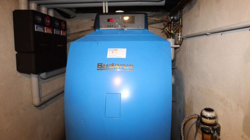 Holz- und Kunststofffenster mit Doppelverglasung. Ölzentralheizung mit Warmwasserbereitung.