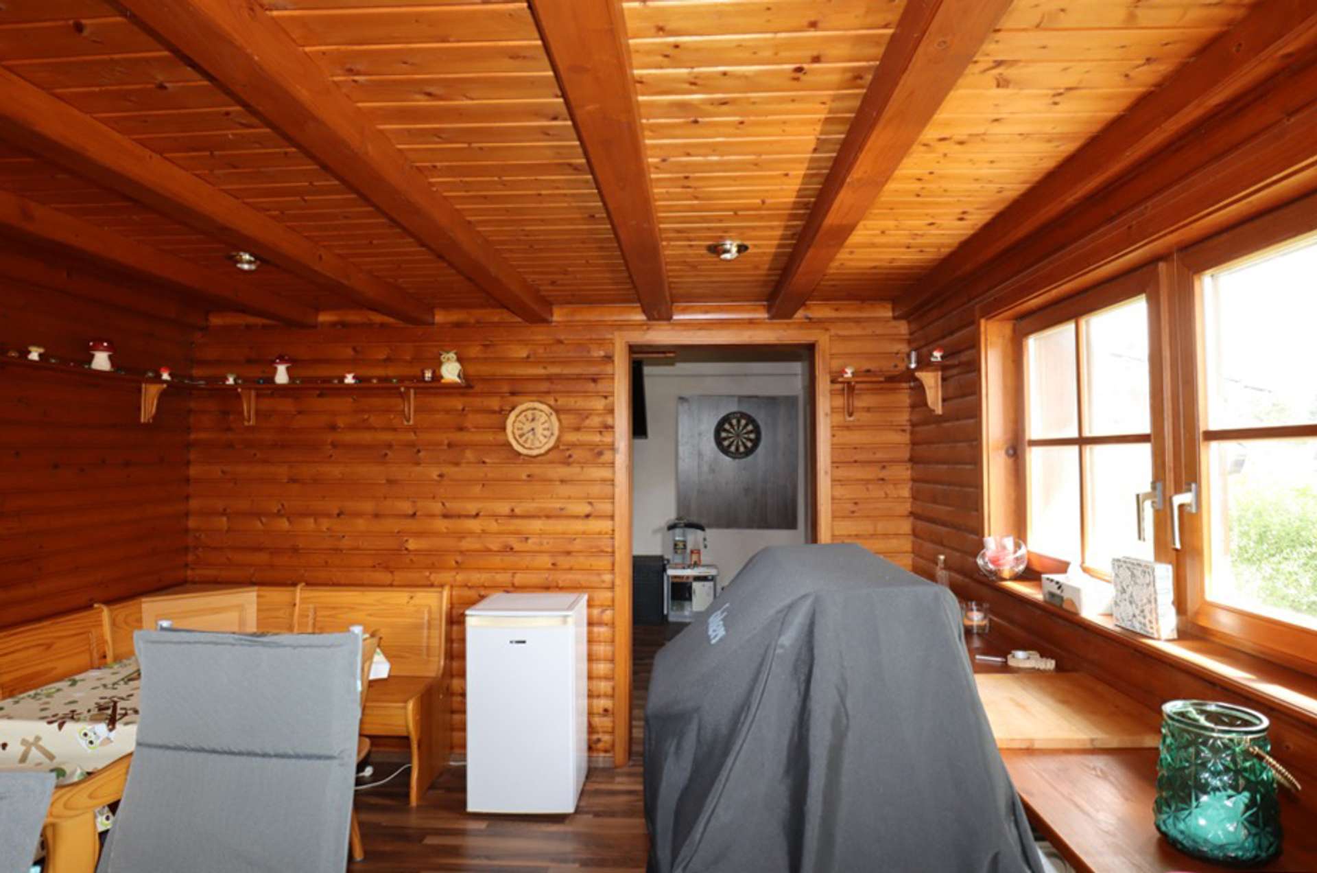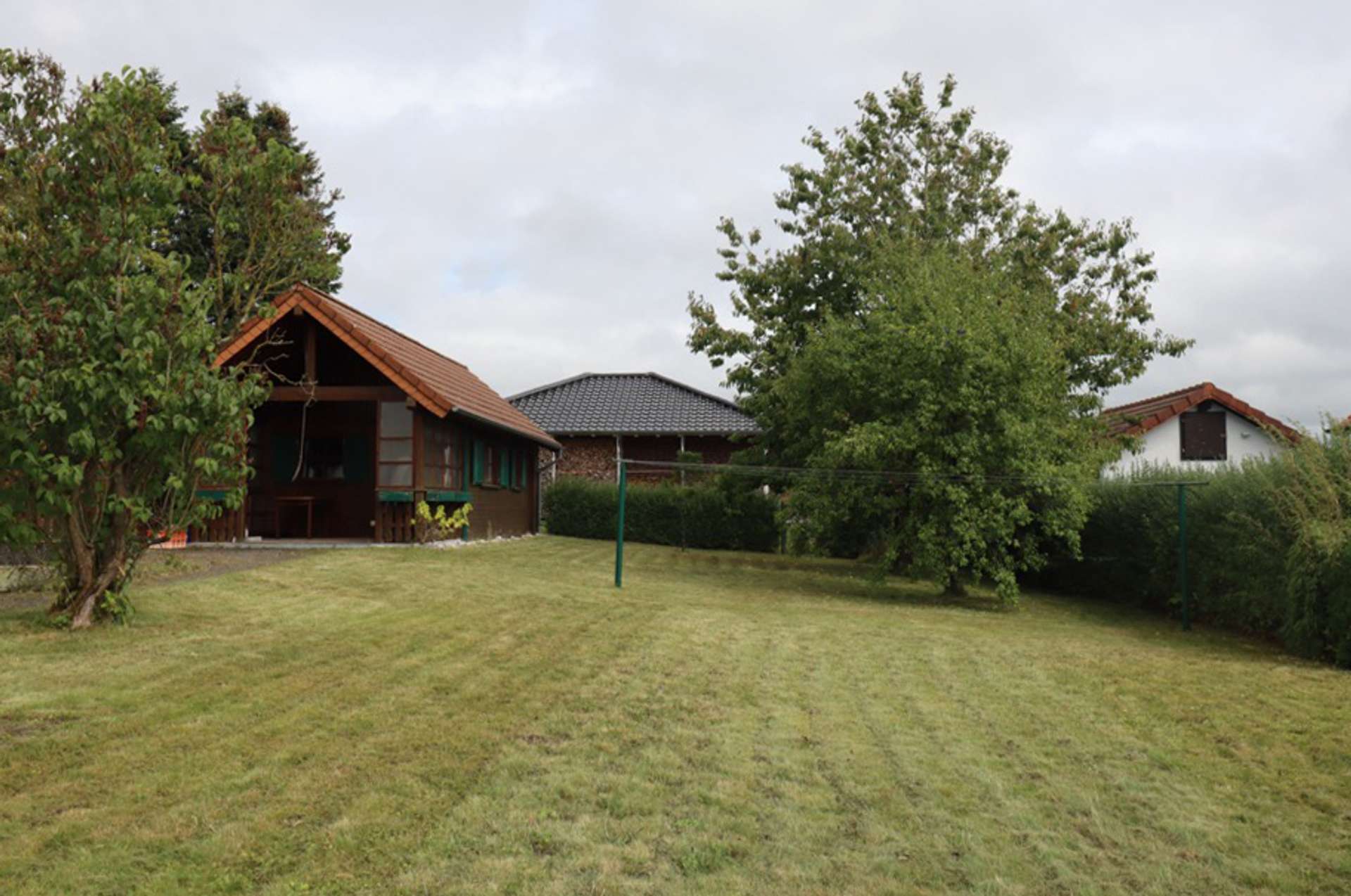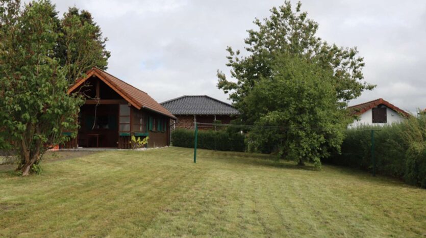 Das Grundstück ist 1.005 m² groß. Vor dem Haus befindet sich ein befestigter Hof mit separater Doppelgarage. Im Durchgang zum hinter dem Haus gelegenen Garten, befindet sich eine weitere Garage mit Tür zum Garten. Der Garten ist aktuell pflegeleicht angelegt und wartet noch auf Gartenfreunde mit grünem Daumen. Ein Holzgartenhaus mit überdachtem Sitzbereich bietet jede Menge Platz für Geselligkeit mit Familie und Freunden. Grill, Pool und Gartenliegen finden hier genauso Platz, wie das Trampolin für die Kleinen.