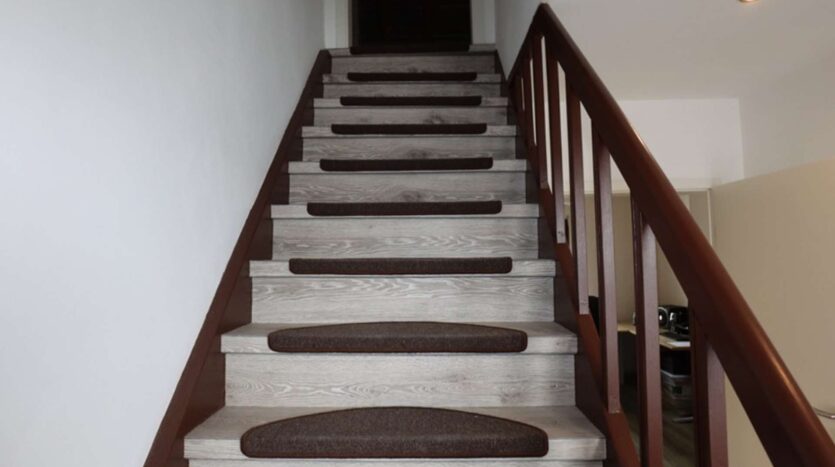 Rechts staat het oorspronkelijke gebouw, waarin zich op de begane grond het kleine vakantie-appartement bevindt. Met een slaapkamer, een gecombineerde woon-/keukenruimte, een kleine berging en een badkamer is dit kleine vakantiehuisje compleet. De trap leidt naar de kamers die momenteel in gebruik zijn als kleine bedrijfsruimte. Er zijn drie slaapkamers, waarvan één toegang biedt tot de woonkamer aan de linkerzijde, en een badkamer met douche.