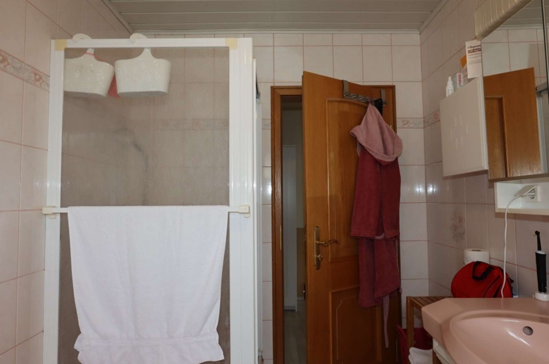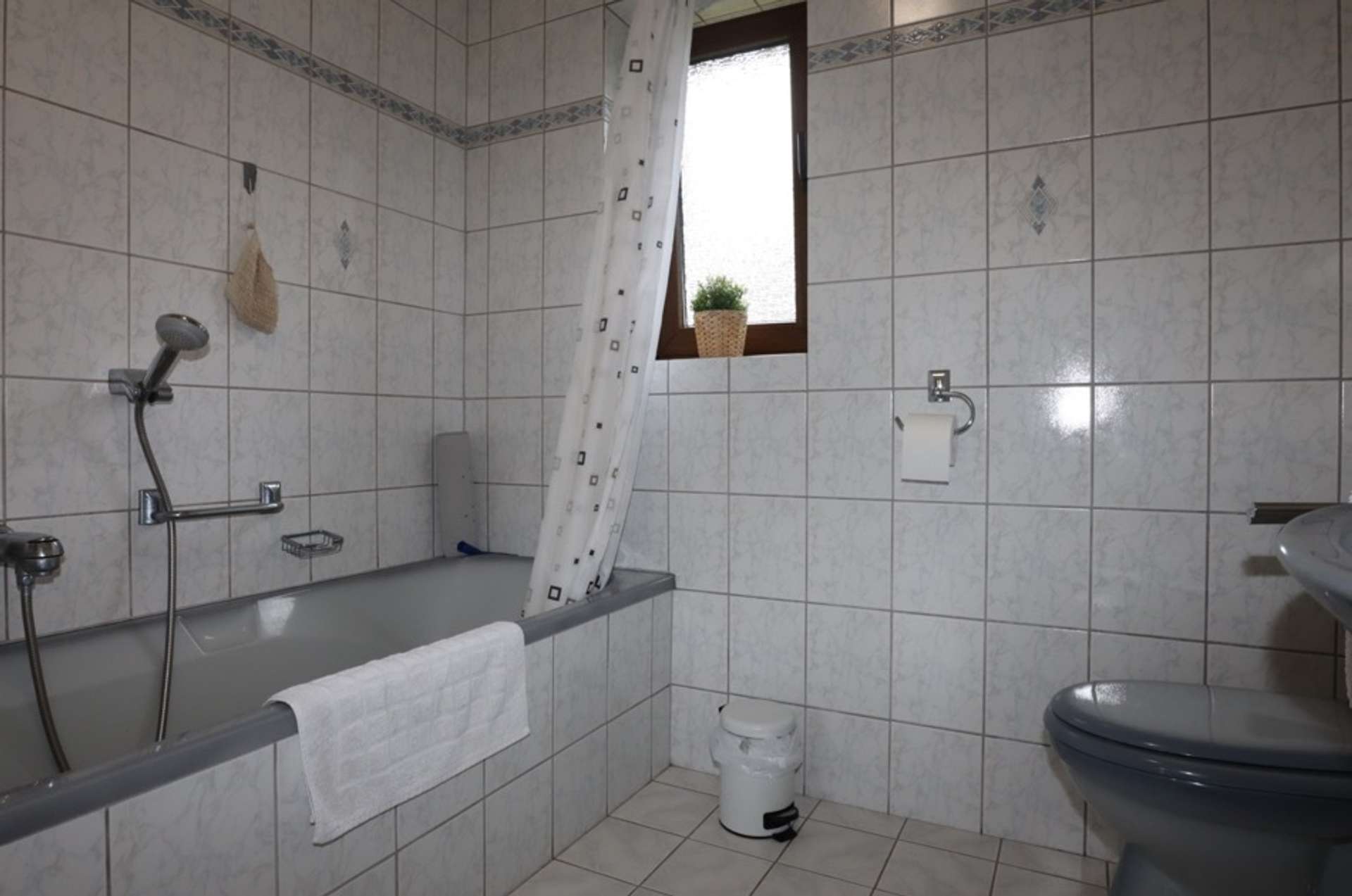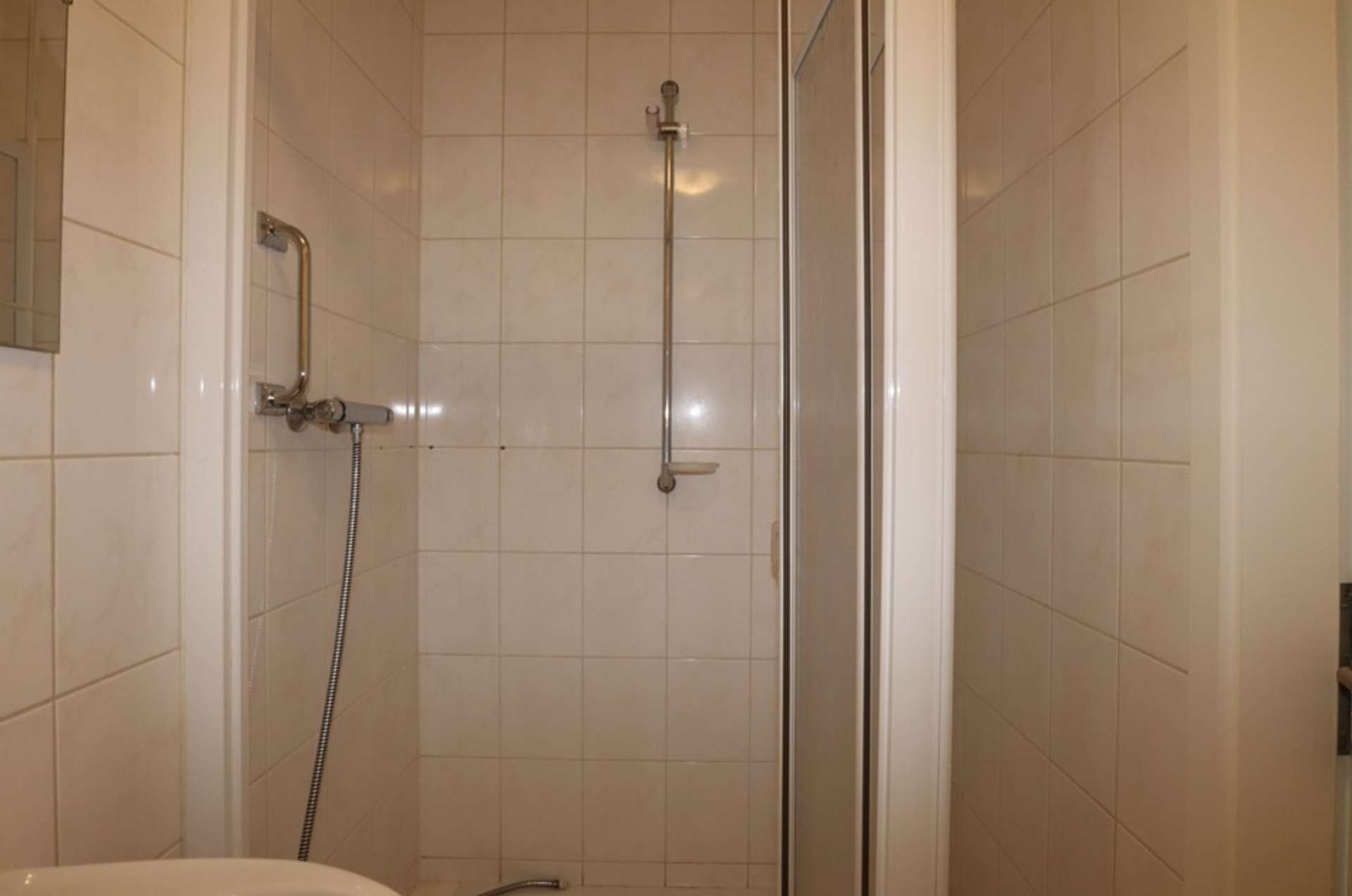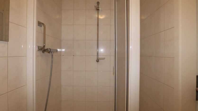 Bovenverdieping: Hal, 2 slaapkamers, badkamer met bad, douche en toilet