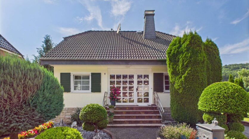 Dieses gepflegte Einfamilienhaus aus dem Jahr 1995 vereint solide Bauqualität mit einer ruhigen, naturnahen Wohnlage in der Eifel. Es handelt sich um ein Fertighaus der Firma Massa mit Erdgeschoss in Holzrahmenbauweise, einem massiv errichteten Vollkeller und einem großzügigen Grundstück von 697 m² – ideal für Familien, Ruhesuchende oder naturverbundene Paare. Das Haus bietet insgesamt ca. 117 m² Wohnfläche, verteilt auf drei Ebenen.