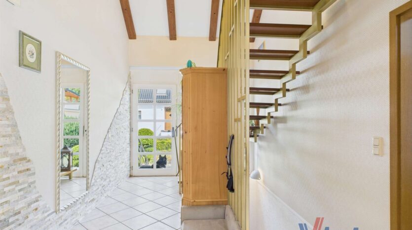 Deze goed onderhouden eengezinswoning, gebouwd in 1995, combineert degelijke bouwkwaliteit met een rustige, natuurlijke ligging in de Eifel. Het betreft een prefab woning van de firma Massa met een begane grond in houtskeletbouw, een solide, volledig afgewerkte kelder en een ruim perceel van 697 m² – ideaal voor gezinnen, rustzoekers of natuurliefhebbers. De woning heeft een totale woonoppervlakte van circa 117 m², verdeeld over drie woonlagen.