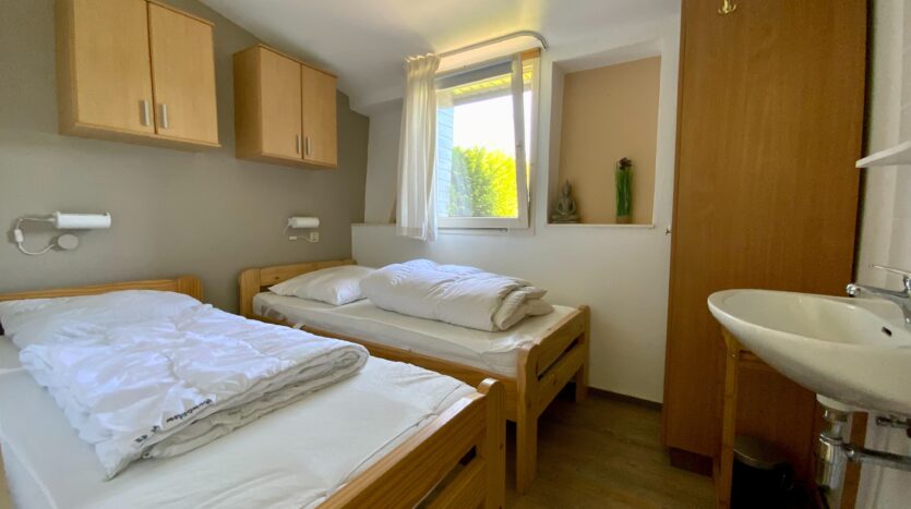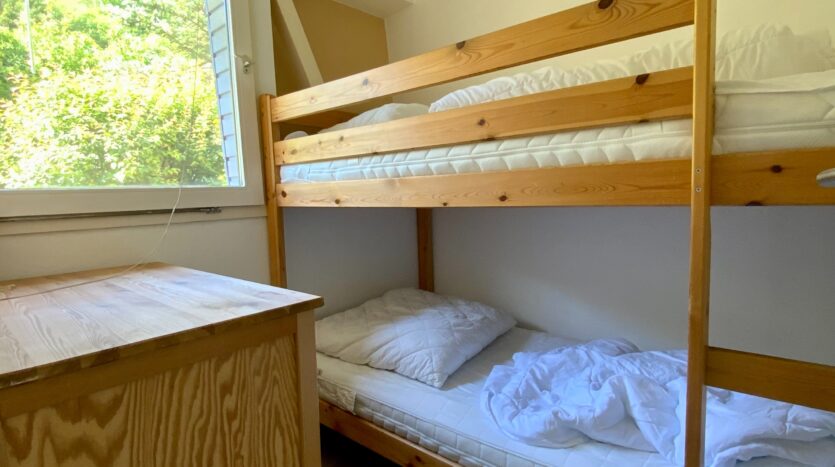 Es befinden sich 2 Schlafzimmer im Haus, wovon eines mit 2 Einzelbetten und das andere mit einem Hochbett ausgestattet ist.