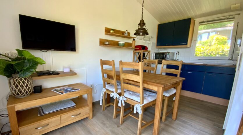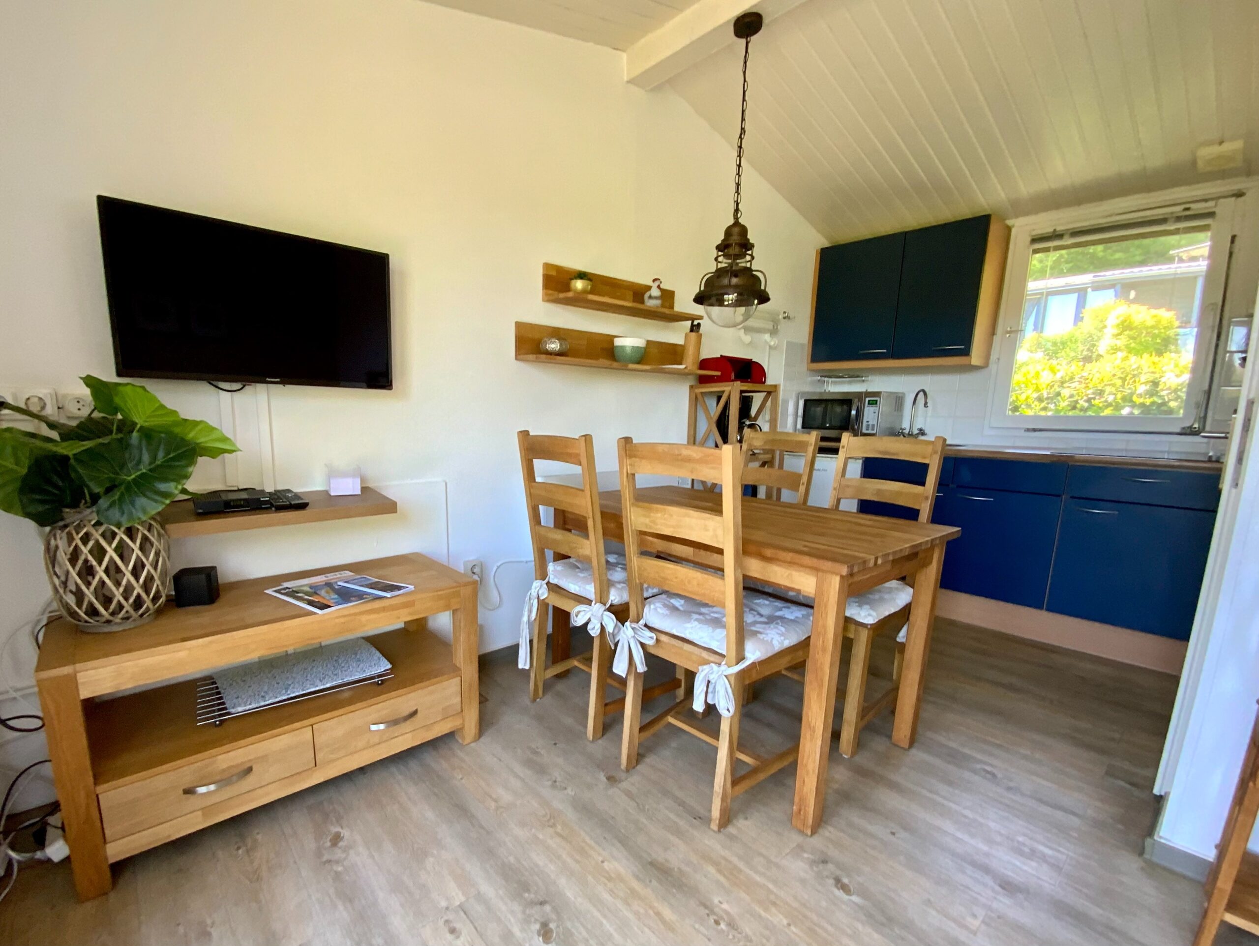 Er zijn 2 slaapkamers in het huis, één met 2 eenpersoonsbedden en de andere met een hoogslaper.