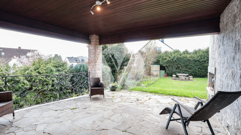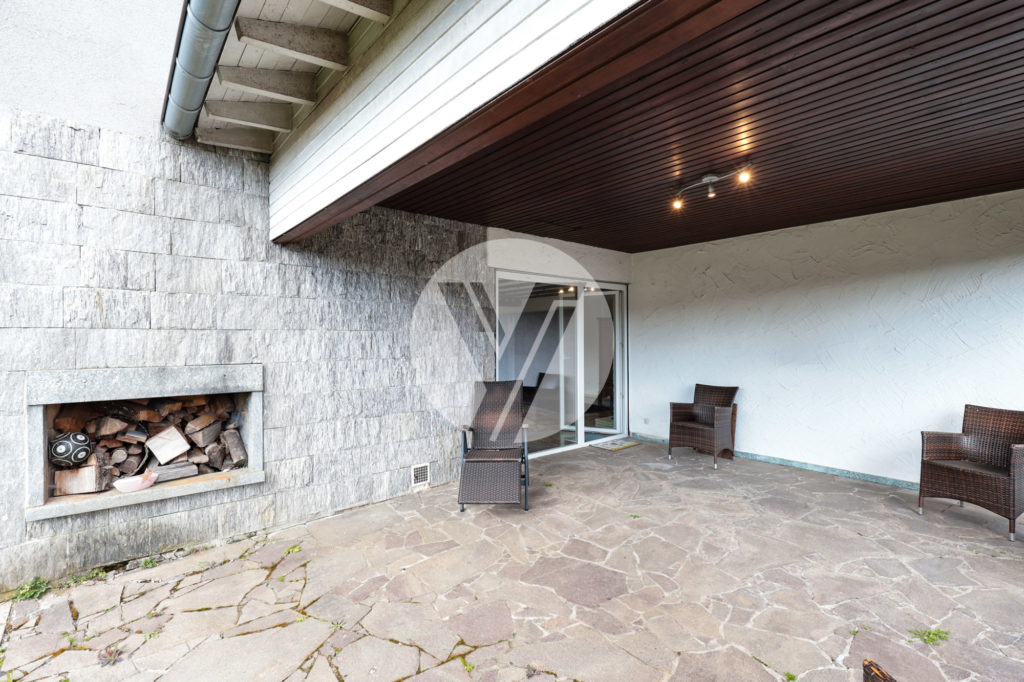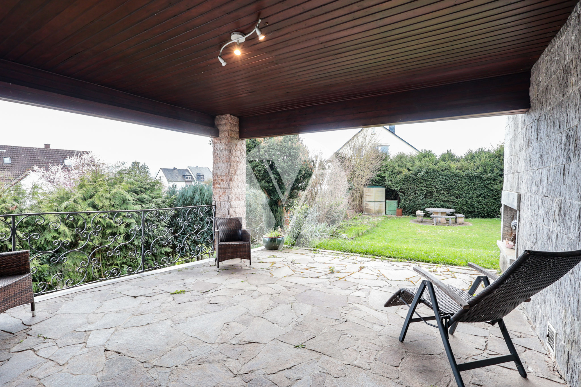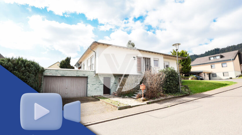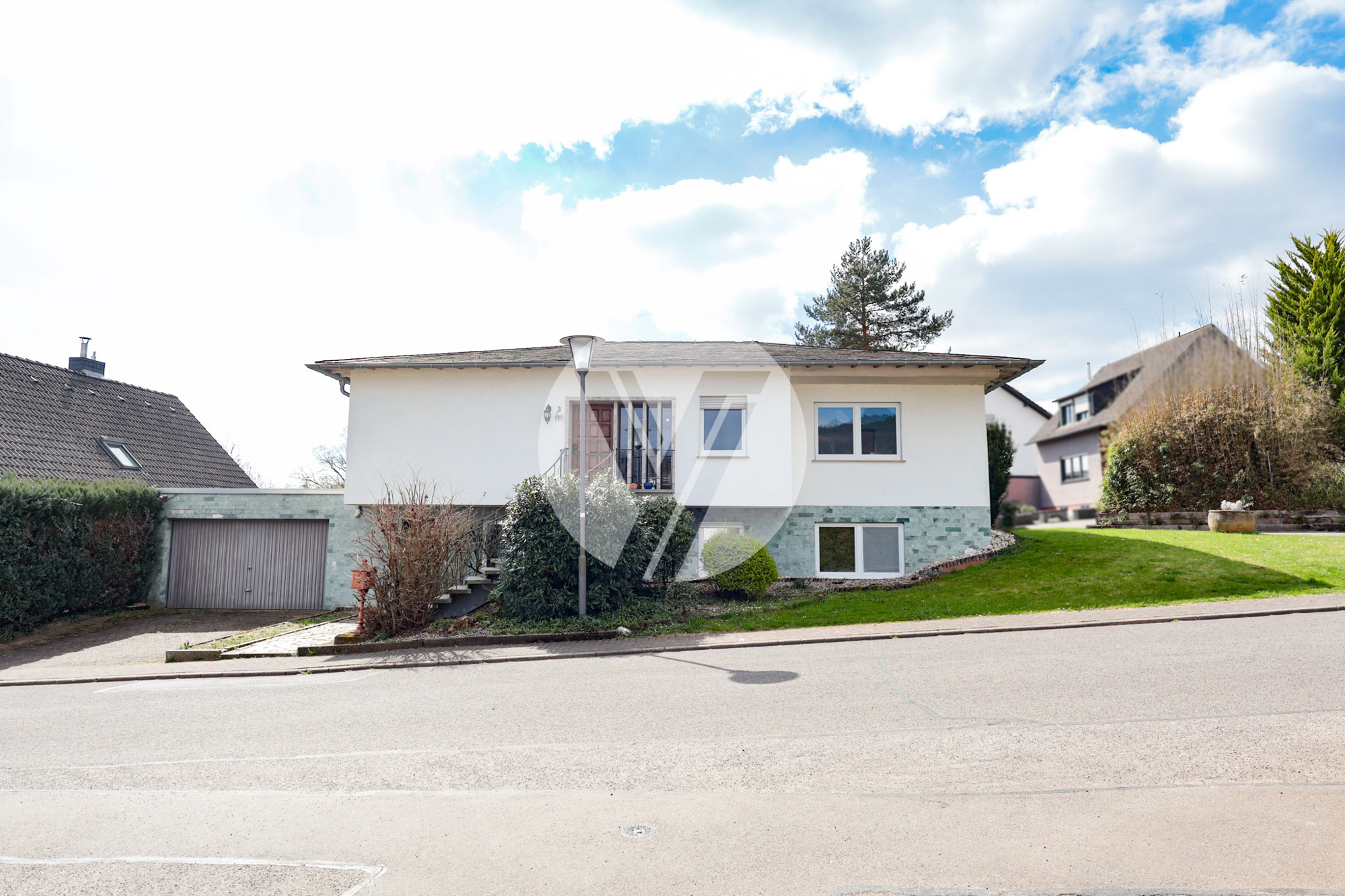 Ruime gezinswoning – bungalow met aanbouw en dubbele garage te koop in Föhren // aan de rand van de stad.