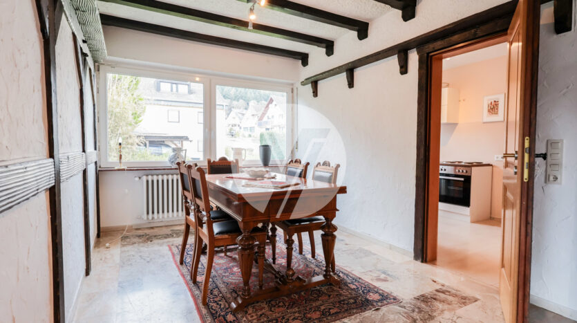 Het hart van de woonkamer is de grote, lichte woon- en eetkamer, die zowel vanuit de hal als vanuit de aparte keuken bereikbaar is. Hier kunt u onvergetelijke momenten doorbrengen met familie en vrienden, terwijl u geniet van het prachtige uitzicht op de bijna afgelegen tuin.