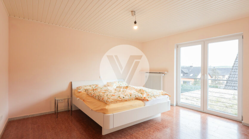 Der Bungalow profitiert von einer leichten Höhenlage, die viel Sonnenschein und einen schönen Weitblick garantiert. Ins Erdgeschoss gelangen Sie über eine ansprechende Außentreppe in die großzügige Diele, die sofort einen einladenden Eindruck hinterlässt. Hier finden sich zwei charmante Schlafräume, die durch ein angrenzendes Bad verbunden sind. Ein weiterer multifunktionaler Raum – ideal als Gästezimmer oder Homeoffice – ergänzt die Räumlichkeiten und verfügt über ein separates Gäste-WC.
