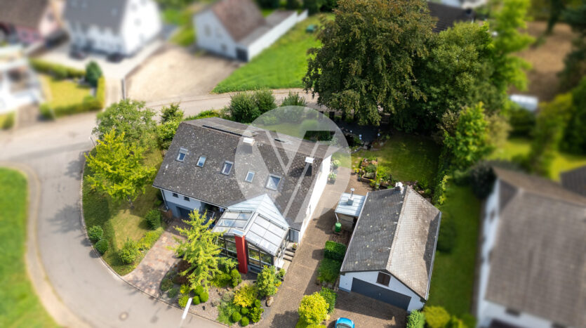 In bevorzugter und sehr ruhiger Höhenlage am Ortsrand von Wasserliesch befindet sich diese geräumige und sehr gepflegte Immobilie. Mit aktuell drei abgeschlossenen Einheiten ist das Haus multifunktional nutzbar und bietet vielfältiges Potential. Eine große, helle Wohneinheit im Erdgeschoss sowie zwei weitere, abgeschlossene Appartement im Dachgeschoss eröffnen Raum für zahlreiche Wohnkonzepte. Komfortables Wohnen im Erdgeschoss und gleichzeitig rentables Vermieten im Obergeschoss ist ebenso denkbar, wie ein Mehrgenerationenkonzept unter einem Dach. Als ebenso lukrativ hat sich die Vermietung der beiden Einheiten im Dachgeschoss sowohl als Ferienappartements, als auch übergangsweise für Monteure und Studenten erwiesen. Die ca. 165m² große Wohneinheit im Erdgeschoss bietet neben einem großzügigen Wohnzimmer, ein helles Esszimmer, die zentrale Küche und einen modernen lichtdurchfluteten Wintergarten. Dieser verbindet Küche mit Wohnraum und bildet somit den lichtdurchfluteten Mittelpunkt der Wohnung. Abgerundet wird dieser Bereich durch ein Gäste-WC und ein kleines Büro- /Gästezimmer. Der Schlafbereich der Wohnung mit großem Doppelzimmer, modernem Wellnessbad und Ankleide ist vom Wohnbereich separiert. Die große überdachte Terrasse kann sowohl aus dem Wohnzimmer, als auch dem Schlafzimmer betreten werden. Eine barrierefreie Erschließung der Erdgeschosswohnung über die Terrasse ist mit geringem Aufwand denkbar.