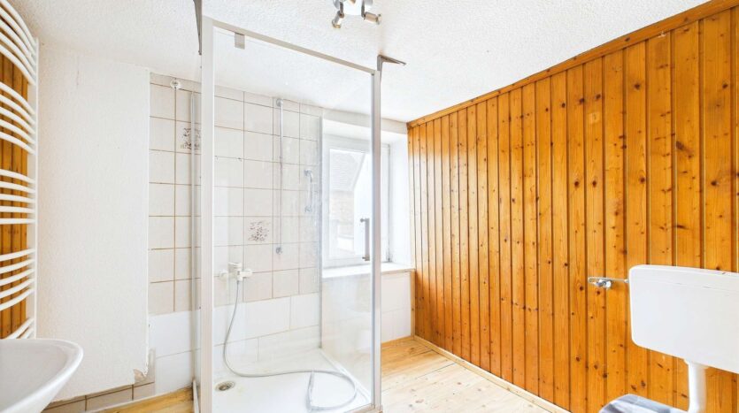 Der vordere Hausteil stammt aus ca. 1900 und verleiht dem Objekt mit seiner traditionellen Bauweise eine besondere Ausstrahlung. Der hintere Anbau aus den 1960er Jahren erweitert das Platzangebot auf moderne und praktische Weise. Die Wohneinheiten sind klug aufgeteilt: Im Obergeschoss befindet sich eine großzügige, bereits vermietete Wohnung mit rund 90 m², die über drei Zimmer, eine Küche, ein Badezimmer sowie einen Balkon verfügt und derzeit eine Kaltmiete von 410 € erzielt. Im Erdgeschoss liegt ein ca. 35 m² großes Appartement mit einem Zimmer, Küche und Bad – ideal für Singles, Pendler oder als Ferienwohnung. Die dritte Einheit, eine abgeschlossene Haushälfte zur Straßenseite, erstreckt sich über zwei Etagen und bietet mit ca. 75 m² genügend Raum für Paare oder kleine Familien. Auch hier stehen drei Zimmer, eine Küche und ein Bad zur Verfügung.