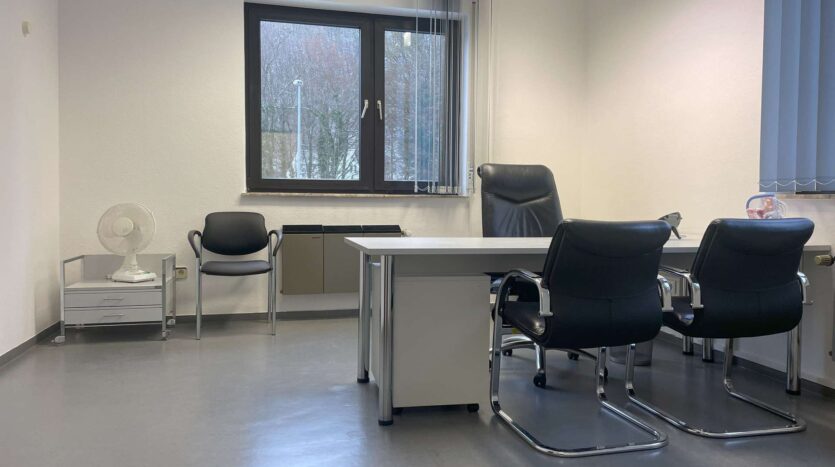 Diese verteilt sich auf 10 Büro-/Praxisräume, eine Anmeldung sowie einen Wartebereich. Ebenfalls stehen dem zukünftigen Mieter eine Küche, zwei Abstellräume sowie zwei Toiletten zur Verfügung.