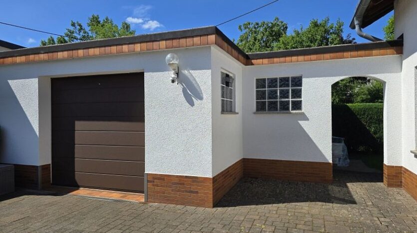 Links und rechts am Wohnhaus befindet sich je eine Garage.