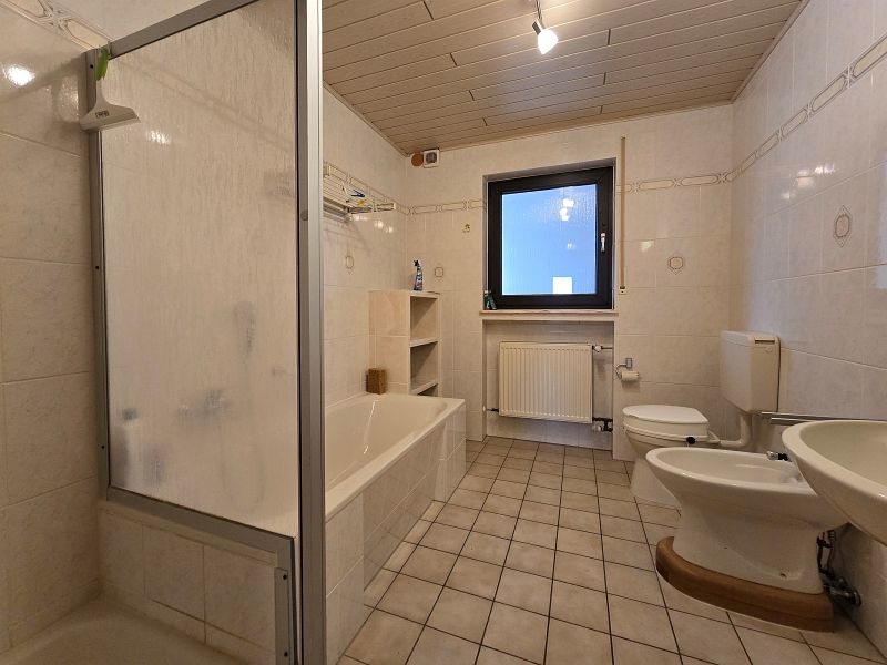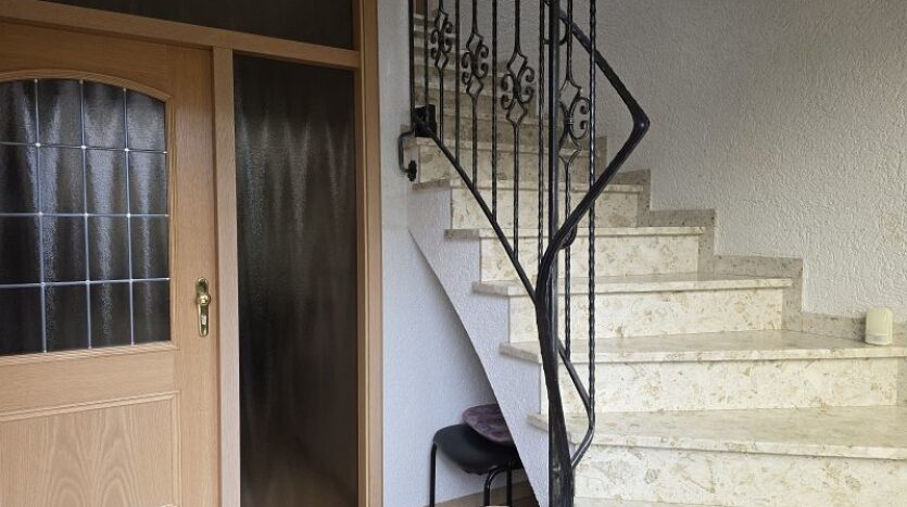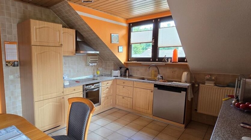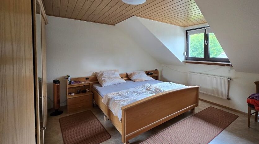 Erdgeschoss und Dachgeschoss sind durch eine gut begehbare massive Treppe miteinander verbunden.