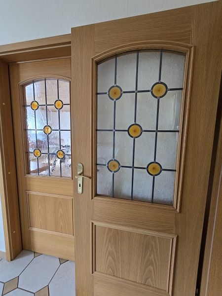 Der barrierefreie Wohnbereich im Erdgeschoss (ca. 130 m²) ist durch eine hübsche Kombination aus Glas und Holz mit Tür zum Treppenhaus abgetrennt. Das Erdgeschoss verfügt über eine großzügige Diele, zwei Schlafzimmer, ein Gäste-WC, ein Tageslichtbad mit BD, Badewanne und Dusche, eine Küche mit integrierter Einbauküche, zwei Abstell- und Vorratsräume und ein großzügiger Wohn- und Essbereich mit Zugang zum Garten und zur Außenterrasse.Hochwertiges Ein- oder Zweifamilienhaus – entscheiden Sie die Nutzung selbst – zwei Garagen und Garten inklusive!