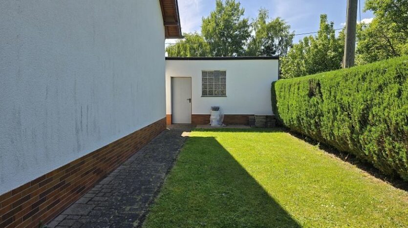 Hinter der linken Garage steht ein massives Gartenhaus, was in der Vergangenheit als Werkstatt genutzt wurde.