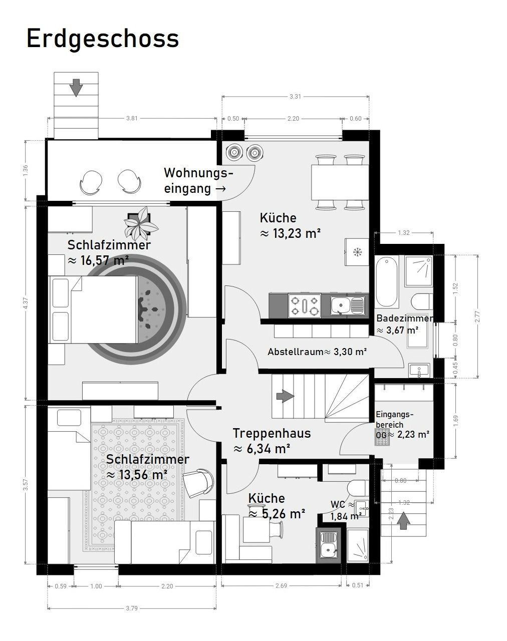 Treppenhaus: ca. 6,34 m²