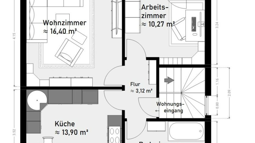 Arbeitszimmer: ca. 10,27 m²