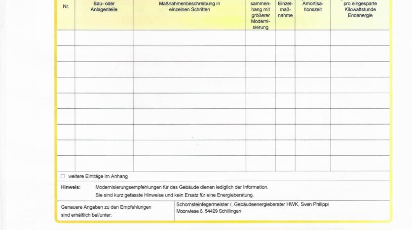 Ämtern und Behörden, Angaben zu Baujahren oder Bauweise