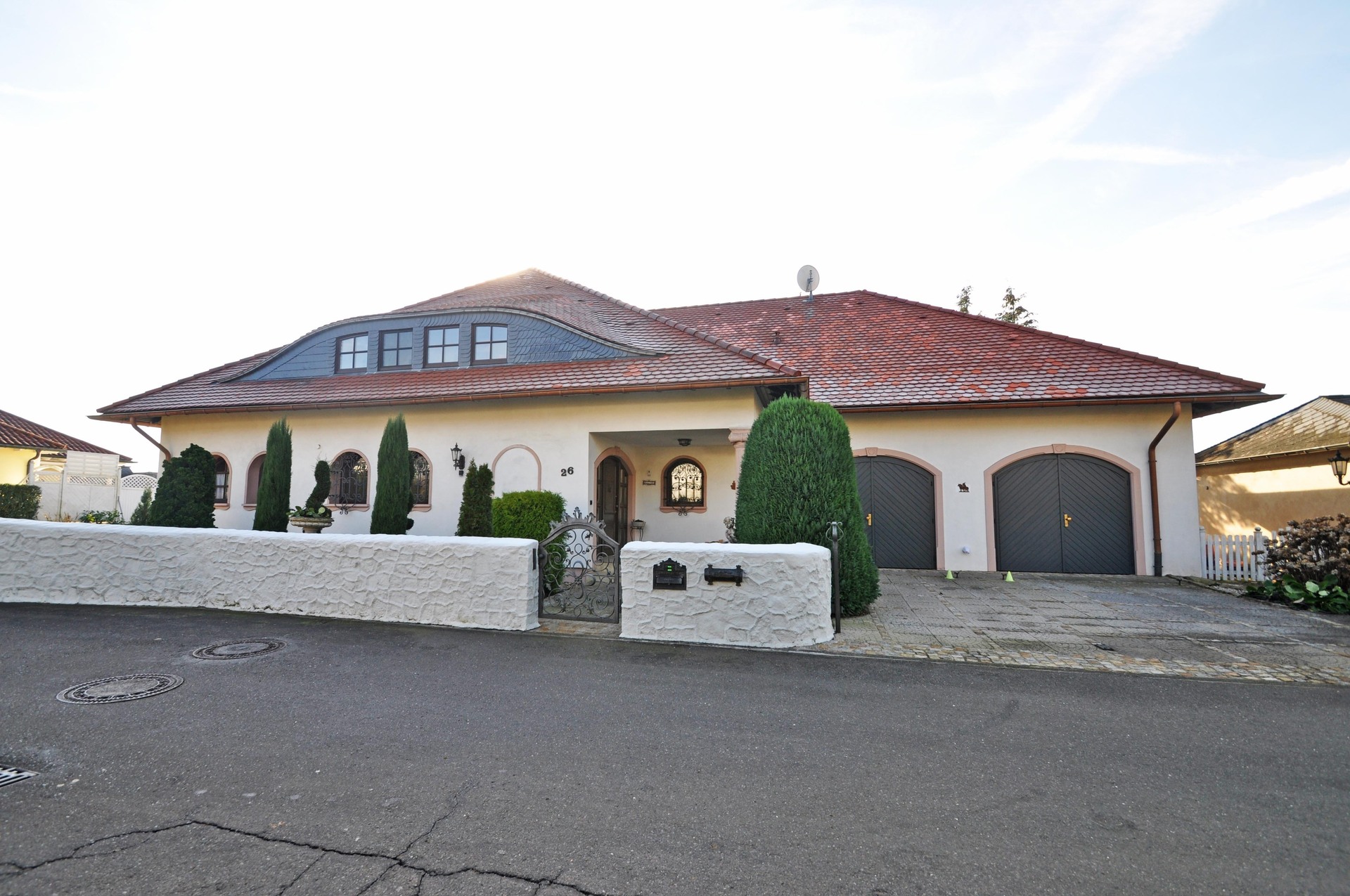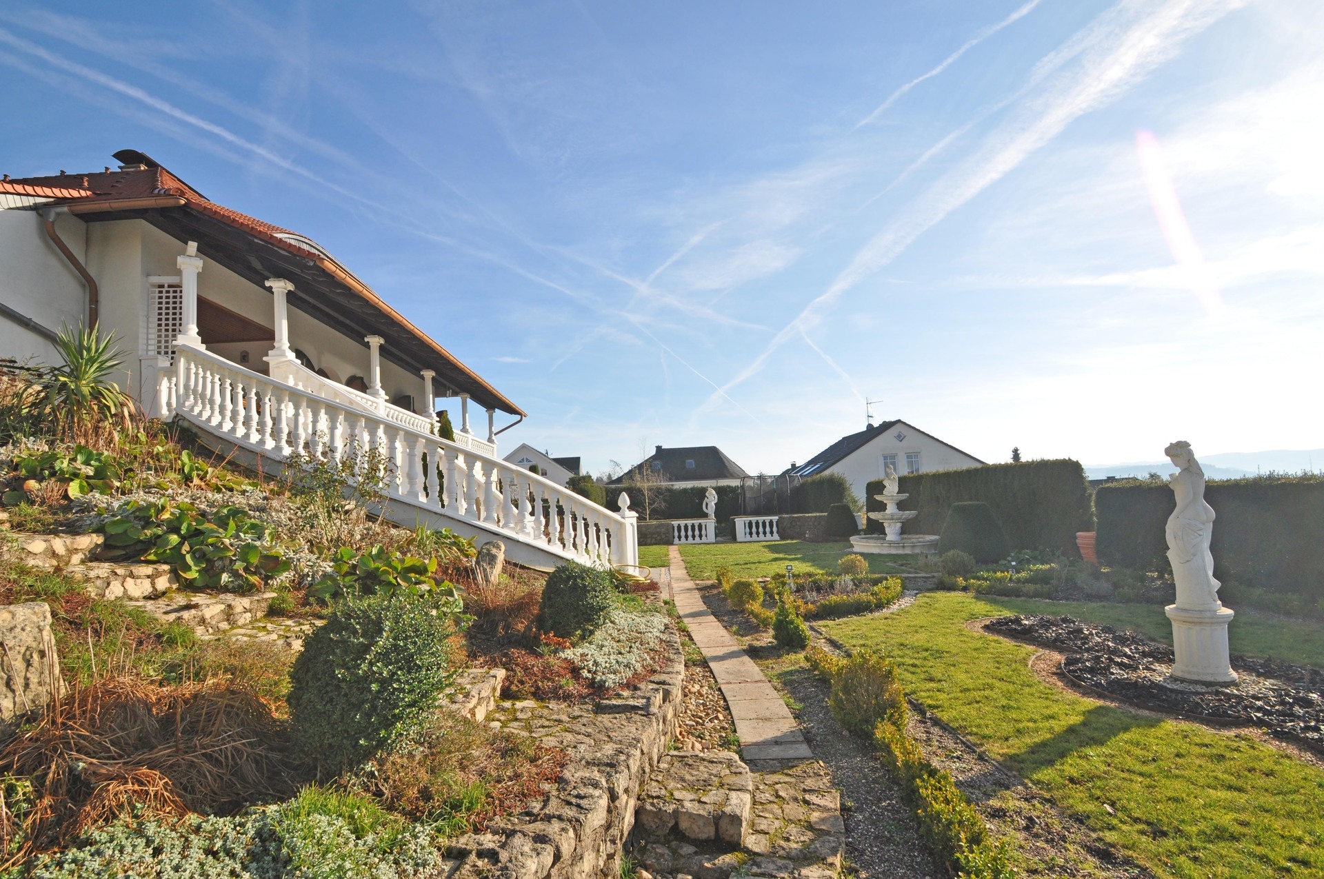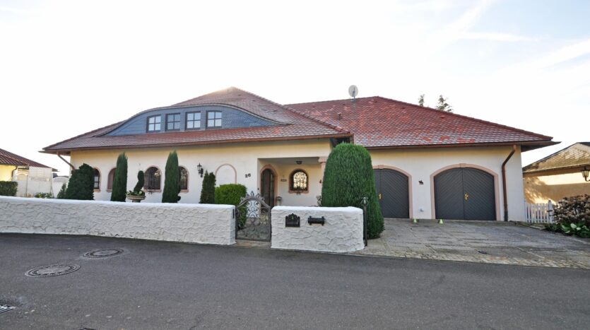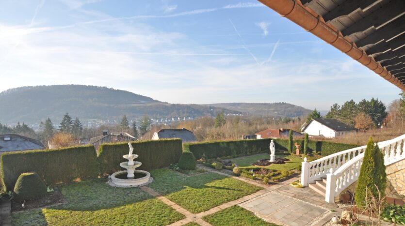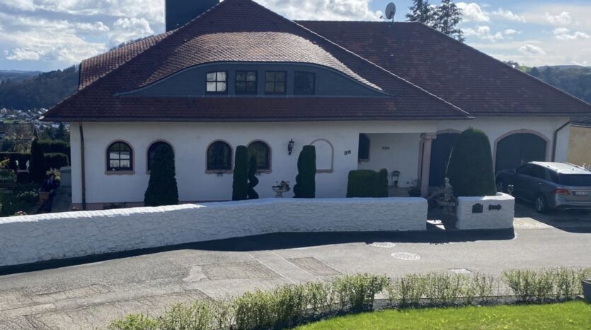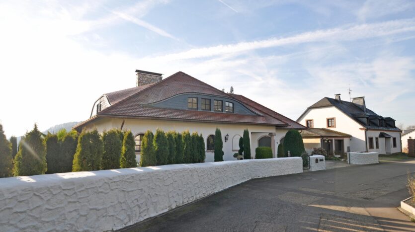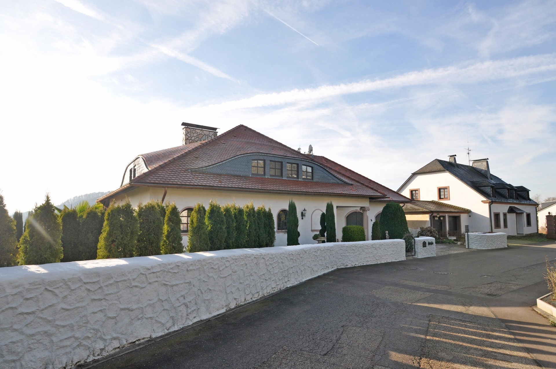Zum Verkauf angeboten wird diese großzügige Villa in einer Höhenlage der Ortschaft Igel, Nahe Trier. Das Anwesen wurde im Jahr 1984 massiv und hochwertig auf einem ca. 1.332 m² großen Grundstück errichtet und bietet heute, verteilt auf drei Etagen und zehn Zimmern, ca. 404 m² Wohnfläche und zusätzliche ca. 150 m² Nutzfläche.